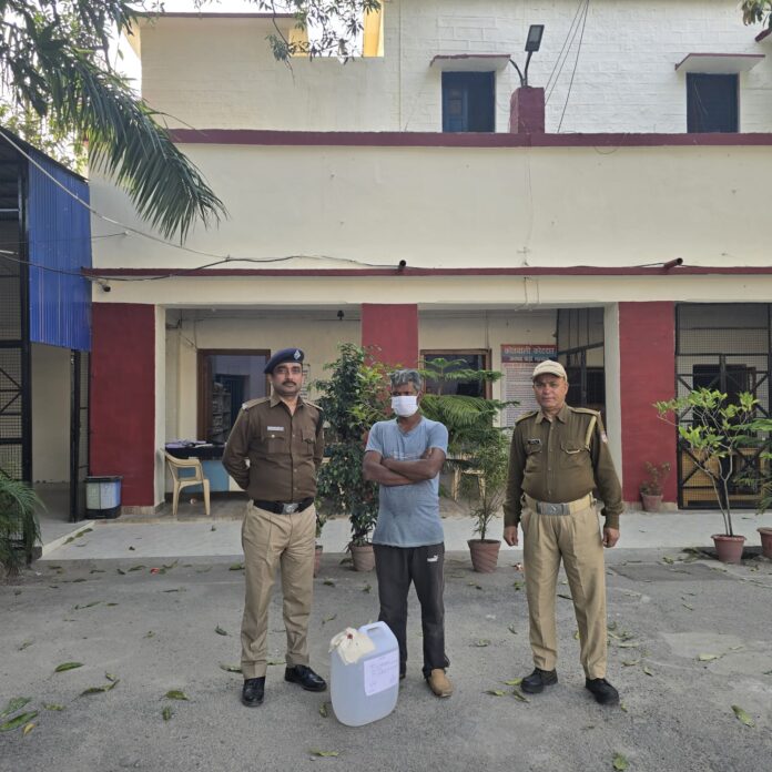 श्रीमान वरिष्ठ पुलिस अधीक्षक महोदय पौड़ी द्वारा जनपद में अवैध शराब के कारोबार में संलिप्त अपराधियों के विरुद्ध कठोर कार्यवाही करने हेतु निर्देशित किया गया है। जिसके अनुपालन में प्रभारी निरीक्षक कोटद्वार के नेतृत्व में कोटद्वार पुलिस द्वारा दैनिक चेकिंग अभियान के तहत आज दिनांक 09.03.2025 को BEL रोड देवरामपुर मार्ग के पास से एक व्यक्ति सुमेर सिंह के कब्जे से 20 लीटर कच्ची शराब बरामद की गई। अभियुक्त को मौके पर गिरफ्तार कर बरामद माल को सील किया गया। इस संबंध में उक्त अभियुक्त के विरुद्ध कोतवाली कोटद्वार पर मु.अ.स.-74/25, धारा-60 आबकारी अधिनियम के तहत अभियोग पंजीकृत कर अभियुक्त के विरुद्ध नियमानुसार आवश्यक वैधानिक कार्रवाई की गई।