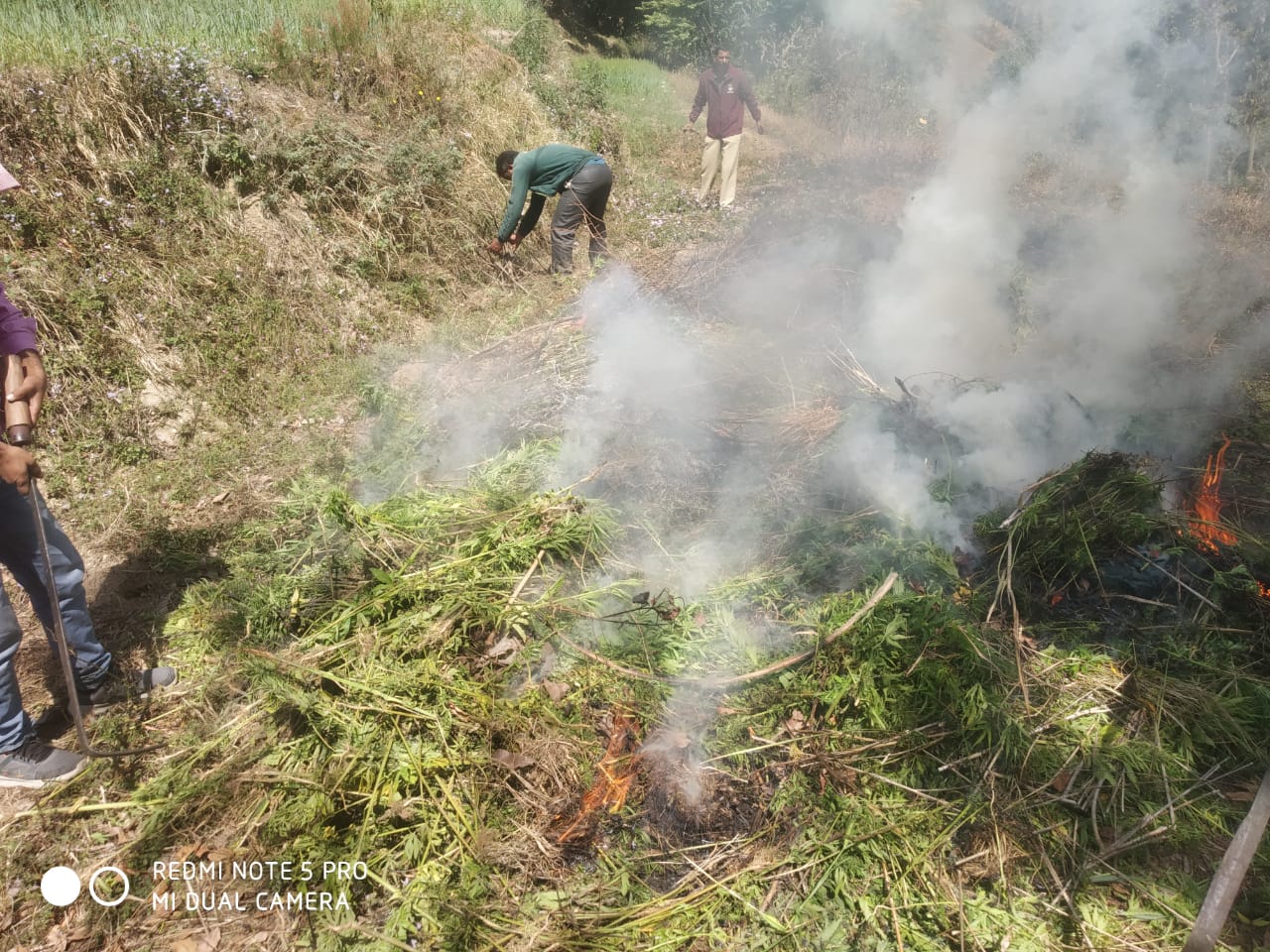 थाना रीठासाहिब क्षेत्रान्तर्गत अवैध रूप से उगाई गई 60 नाली भूमि में भांग की खेती का किया गया विनिष्टीकरण