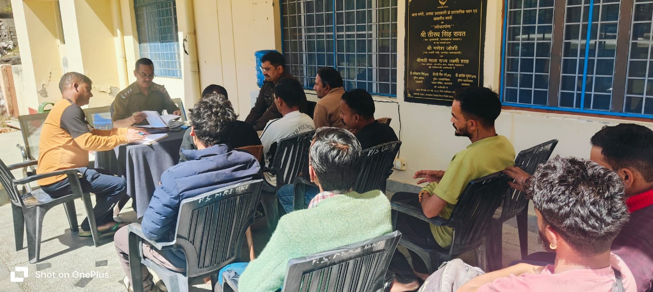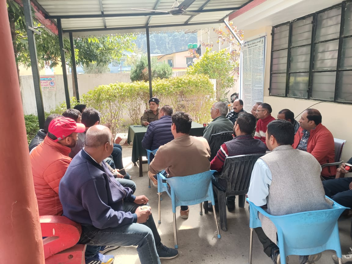 होली एवं रमजान पर्व के दौरान जुम्मे की नमाज को सकुशल, सौहार्दपूर्ण एवं शान्तिपूर्ण तरीके से सम्पन्न करवाए जाने हेतु सरिता डोबाल, पुलिस अधीक्षक उत्तरकाशी के निर्देशन में आज 12.03.2025 को उत्तरकाशी पुलिस द्वारा सभी थाना/कोतवाली पर पीस कमेटी की मीटिंग्स ली गयी, मीटिंग्स में सभी गणमान्य व्यक्तियों को पर्व शान्तिपूर्ण तरीके व आपसी भाईचारे के साथ मनाने, पर्व में नशीले पदार्थों का सेवन न करने, हुडदंग न मचाने