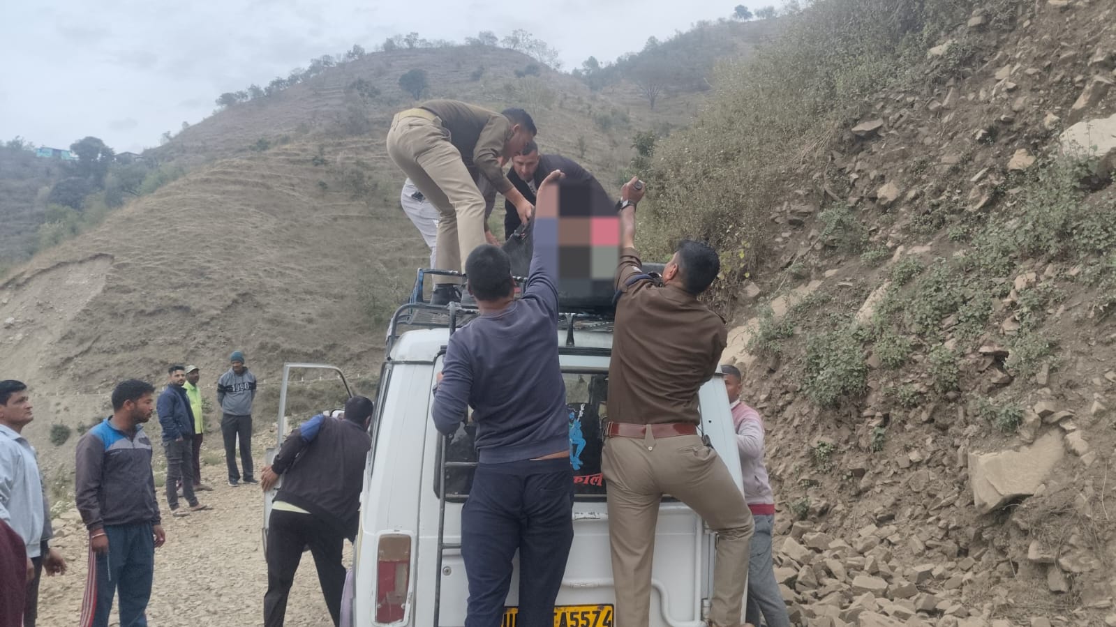 पुलिस टीम द्वारा स्थानीय लोगों की मदद से रेस्क्यू ऑपरेशन चलाया गया। वाहन के पास पहुंचने से पता चला कि एक व्यक्ति घायल अवस्था में पड़ा है तथा दूसरे व्यक्ति की मौके पर ही मृत्यु हो चुकी है। कड़ी मशक्कत व स्ट्रेचर के सहारे घायल व्यक्ति को पुलिस टीम द्वारा स्थानीय लोगों की मदद से खाई से निकालकर निजी वाहन के माध्यम से राजकीय चिकित्सालय रिखणीखाल पहुंचाया जहां घायल को प्राथमिक उपचार के बाद बेस अस्पताल कोटद्वार रेफर किया गया तथा दुर्घटना में मृत्यु हुए व्यक्ति की पंचायतनामा की कार्यवाही की गयी।