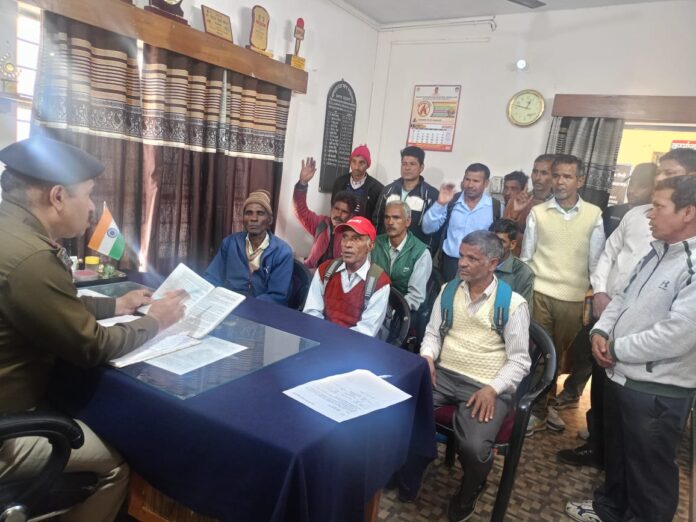 पुलिस अधीक्षक रुद्रप्रयाग द्वारा दिये गये निर्देशों के क्रम में प्रभारी निरीक्षक कोतवाली रुद्रप्रयाग निरीक्षक मनोज नेगी द्वारा आज दिनांक 21.03.2025 को कोतवाली रुद्रप्रयाग में कोतवाली क्षेत्रान्तर्गत पड़ने वाले विभिन्न ग्रामों के ग्राम चौकीदारों की गोष्ठी ली गयी, जिसमें सभी ग्राम चौकीदारों को अपने-अपने गांवो में शान्ति व्यवस्था बनाए रखने हेतु संदिग्ध व्यक्तियों एवं समूह की गतिविधियों पर नजर रखने एवं तत्काल पुलिस को सूचना उपलब्ध कराने हेतु कहा गया। अवगत कराया कि प्रत्येक ग्राम प्रहरी को पता होना चाहिये कि उसके क्षेत्र में कौन आपराधिक आपराधिक प्रवृत्ति का है तथा कौन नशा बेचता है। गांव में शान्ति तथा सौहार्द का वातावारण बनाये रखने के लिए चौकीदारों को उनके कर्तव्यों से सम्बन्धित उत्तराखण्ड पुलिस अधिनियम 2007 में वर्णित धाराओं की जानकारी भी दी गई।