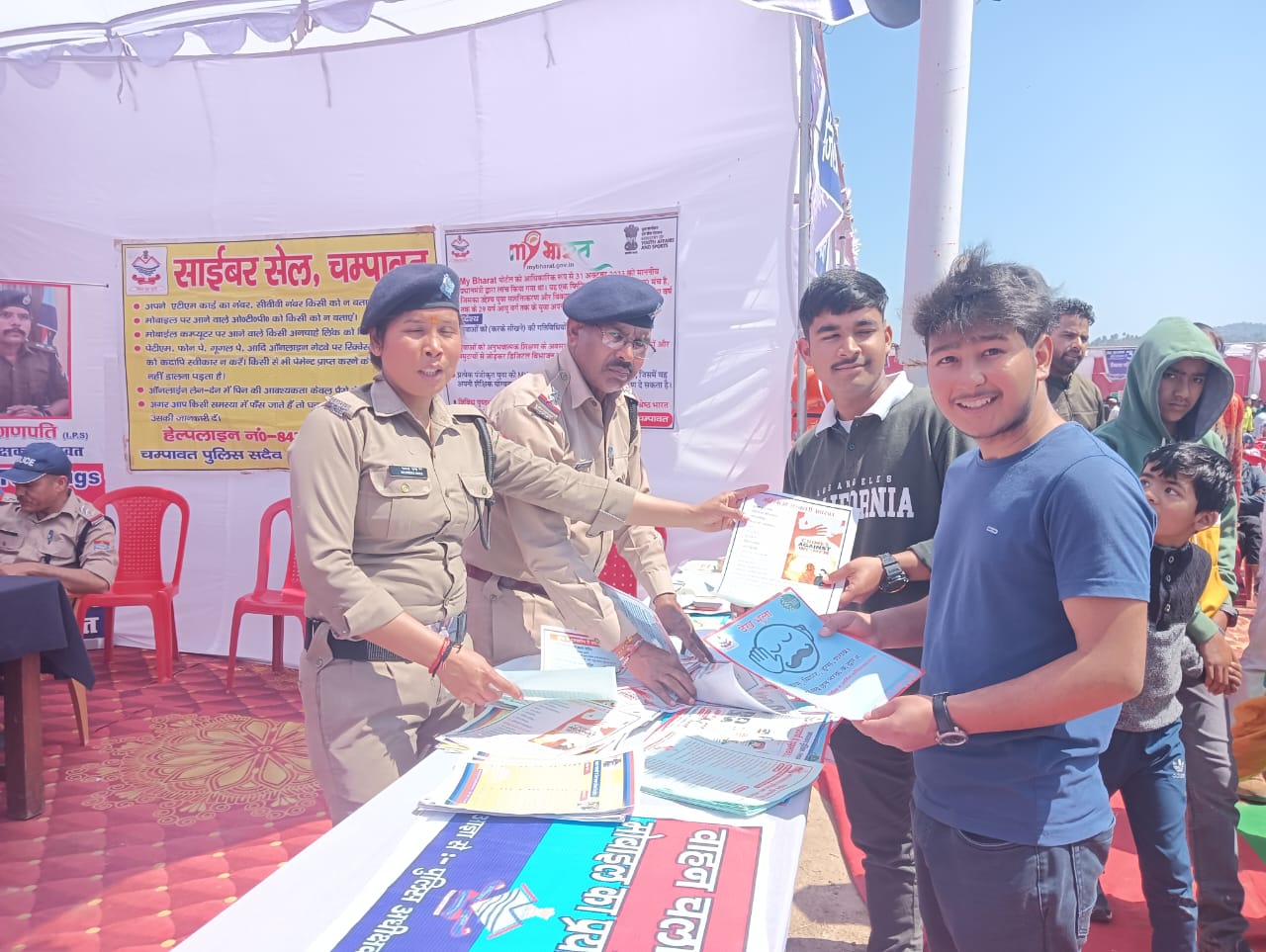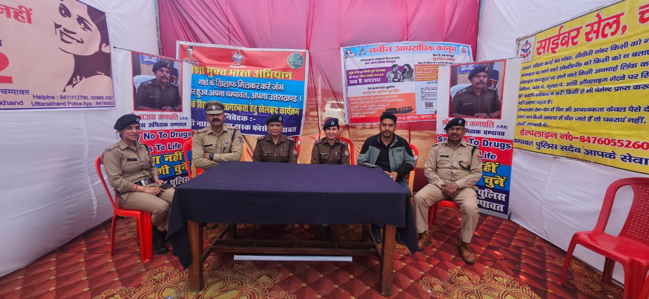 उक्त के क्रम में अजय गणपति, पुलिस अधीक्षक चम्पावत के निर्देशानुसार/मौजूदगी मे लोगों को जागरुक किए जाने हेतु जनपद चंपावत पुलिस द्वारा भी साइबर सुरक्षा, मादक पदार्थों से बचाव, महिला सुरक्षा, यातायात के नियमों के पालन हेतु स्टॉल लगाकर जागरुक किया गया। जिसमे –
