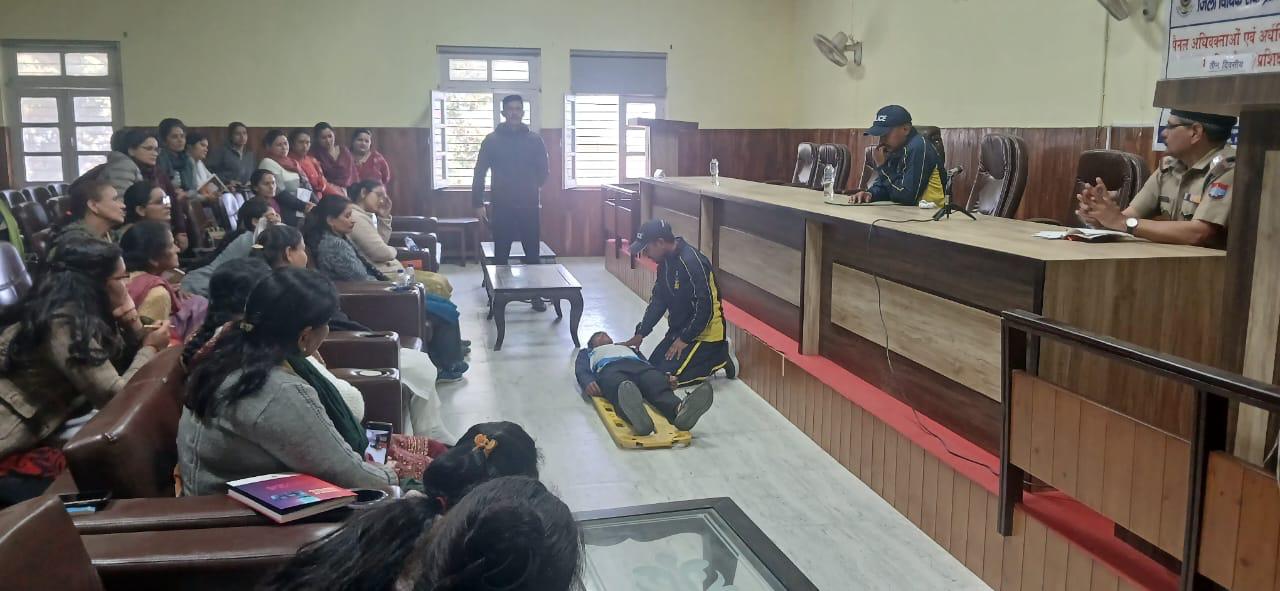 आज दिनांक 24.03.2025 को पुलिस अधीक्षक रेखा यादव के आदेश के अनुपालन में प्रभारी अग्निशमन अधिकारी दया किशन और एसडीआरएफ की संयुक्त टीम द्वारा जिला सत्र न्यायालय पिथौरागढ़ में विधिक सलाहकारों और वालंटियर्स को दैविक आपदा, मानवजनित आपदा एवं प्राकृतिक आपदा के संबंध में विस्तृत जानकारी प्रदान की गई। किसी भी प्रकार की आपदा घटित होने पर आमजनमानस का सहयोग करने हेतु प्रेरित किया गया।