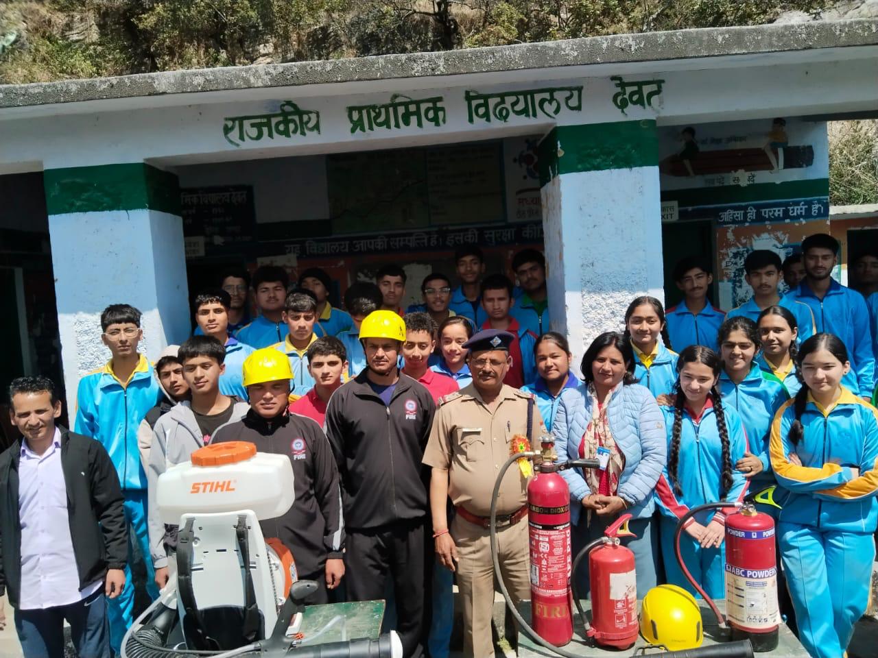 साथ ही लीडिंग फायरमैन नरेंद्र प्रसाद के नेतृत्व में प्राथमिक विद्यालय देवत में जे0बी0 मेमोरीयल मानस एकेडेमी पिथौरागढ़ द्वारा आयोजित राष्ट्रीय सेवा योजना शिविर कार्यक्रम में विद्यालय के प्राचार्य, अध्यापक, ग्रामीण महिलाओं और बच्चों को आग बुझाने के तरीके बताए गए और मॉक ड्रिल कराई गई।