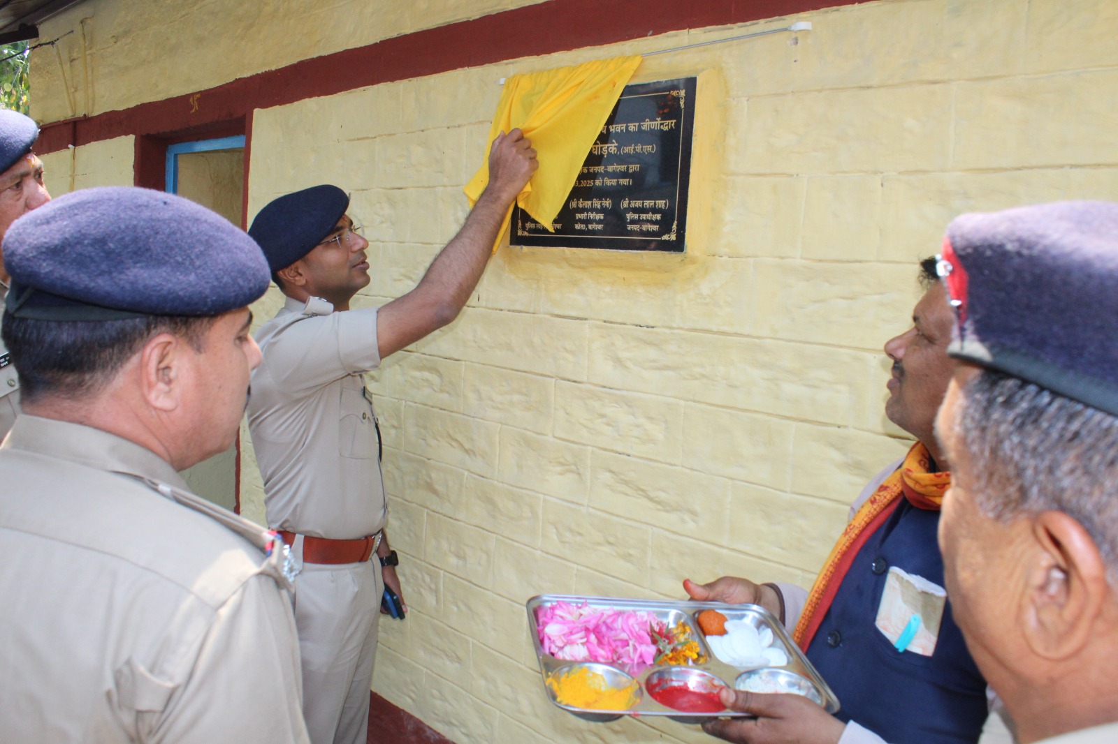 थाना कोतवाली बागेश्वर परिसर में बने पुलिस भोजनालय के पुराने व टूट-फूट होने के कारण भवन को सुधारीकरण की आवश्यकता होने पर पुलिस अधीक्षक, बागेश्वर चन्द्रशेखर घोडके, के निर्देशन में भोजनालय का जीर्णोदार/नवनिर्माण किया गया। उक्त जीर्णोदार व नवनिर्माण कार्य के पूर्ण होने पर आज दिनांक 25-03-25 को पुलिस अधीक्षक द्वारा पूर्ण विध-विधान के साथ पूजा-अर्चना कर नवनिर्मित भोजनालय का उद्घाटन किया गया।