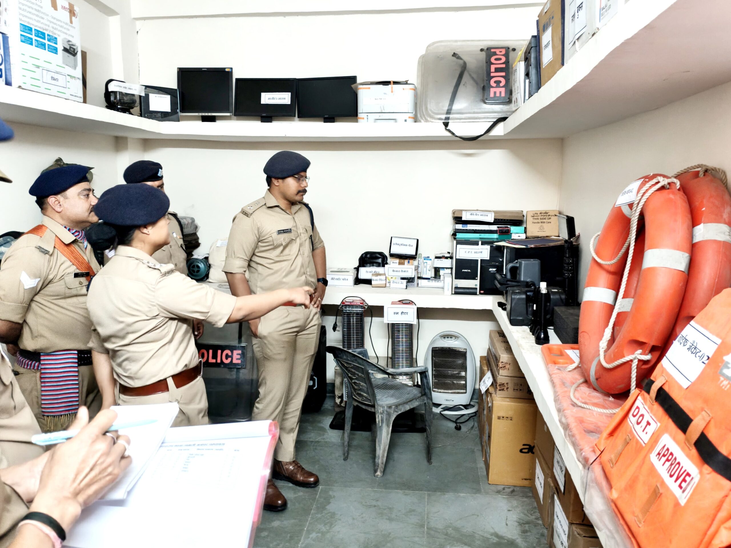 निरीक्षण के दौरान कार्यालय अभिलेखों, मालखाना, शस्त्रागार, आपदा उपकरणों, दंगा नियत्रण शस्त्रों/टियर गैस, सीसीटीएनएस, लावारिस मालों/ वाहनों, मैस, बैरक, आवास परिसर आदि का निरीक्षण किया गया।