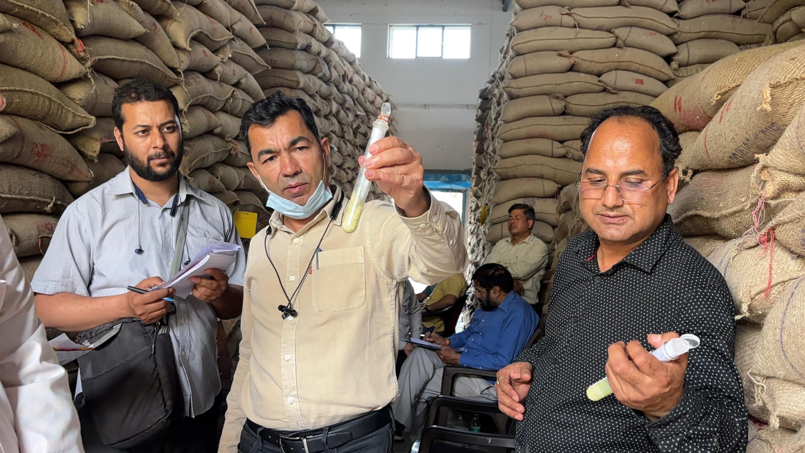 आज भी 12 लॉट के सैम्पल फेलमौके पर प्रशासनिक टीम एक-एक खेप की कर रही है, डपगमक पदकपबंजवत उमजीवक सैम्पलिंग