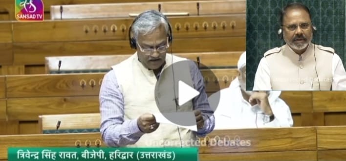 देहरादून: हरिद्वार सांसद त्रिवेंद्र सिंह रावत ने आज लोकसभा में अवैध खनन से भरे ट्रकों और उनसे सड़कों पर जनता की सुरक्षा से जुड़े गंभीर मुद्दे की ओर सरकार का ध्यान आकृष्ट किया। उन्होंने लोकसभा स्पीकर के जरिए केंद्र सरकार से मांग की कि अवैध तरीके से खनन सामग्री से भरे तेज गति से सड़कों पर चल रहे वाहनों की निगरानी के लिए विशेष टास्क फोर्स गठित की जाए। उन्होंने अवैध खनन सामग्री ढोने वाले ट्रक मालिकों के खिलाफ भी कठोर कार्रवाई करने की मांग की है। ऐसा दूसरी बार हुआ जब हरिद्वार सांसद त्रिवेंद्र सिंह रावत ने लोकसभा सदन में हरिद्वार समेत पूरे राज्य में अवैध खनन का मुद्दा उठाया है।