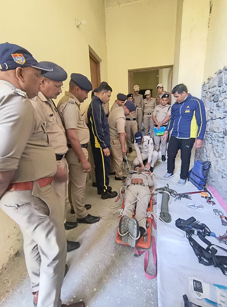आज दिनांक 28/03/2025 को आयुष अग्रवा वरिष्ठ पुलिस अधीक्षक के आदेश के अनुपालन में थाना कैम्पटी पर नियुक्त समस्त अधिकारियों व कर्मचारीगण को एसडीआरएफ के प्रशिक्षित कार्मिकों के माध्यम से प्रशिक्षण कराये जाने के संबंध में थाना कैम्पटी पर थाना प्रभारी निरीक्षक संजय मिश्रा द्वारा एस0डी0आर0एफ0 के प्रशिक्षित कर्मचारी गणों को बुलाकर थाने के सभी अधिकारी और कर्मचारीगण को थाने पर मौजूद आपदा उपकरणों के सम्बन्ध में विस्तृत जानकारी देते हुए आपदा उपकरणों के आपदा/दुर्घटना के समय बेहतर प्रयोग करने, दुर्घटना में घायलों को त्वरित रेस्क्यू करने, प्राथमिक उपचार प्रदान करने, हार्ट अटैक के मरीज को सीपीआर देने के सम्बन्ध में विस्तृत प्रशिक्षण दिया गया।