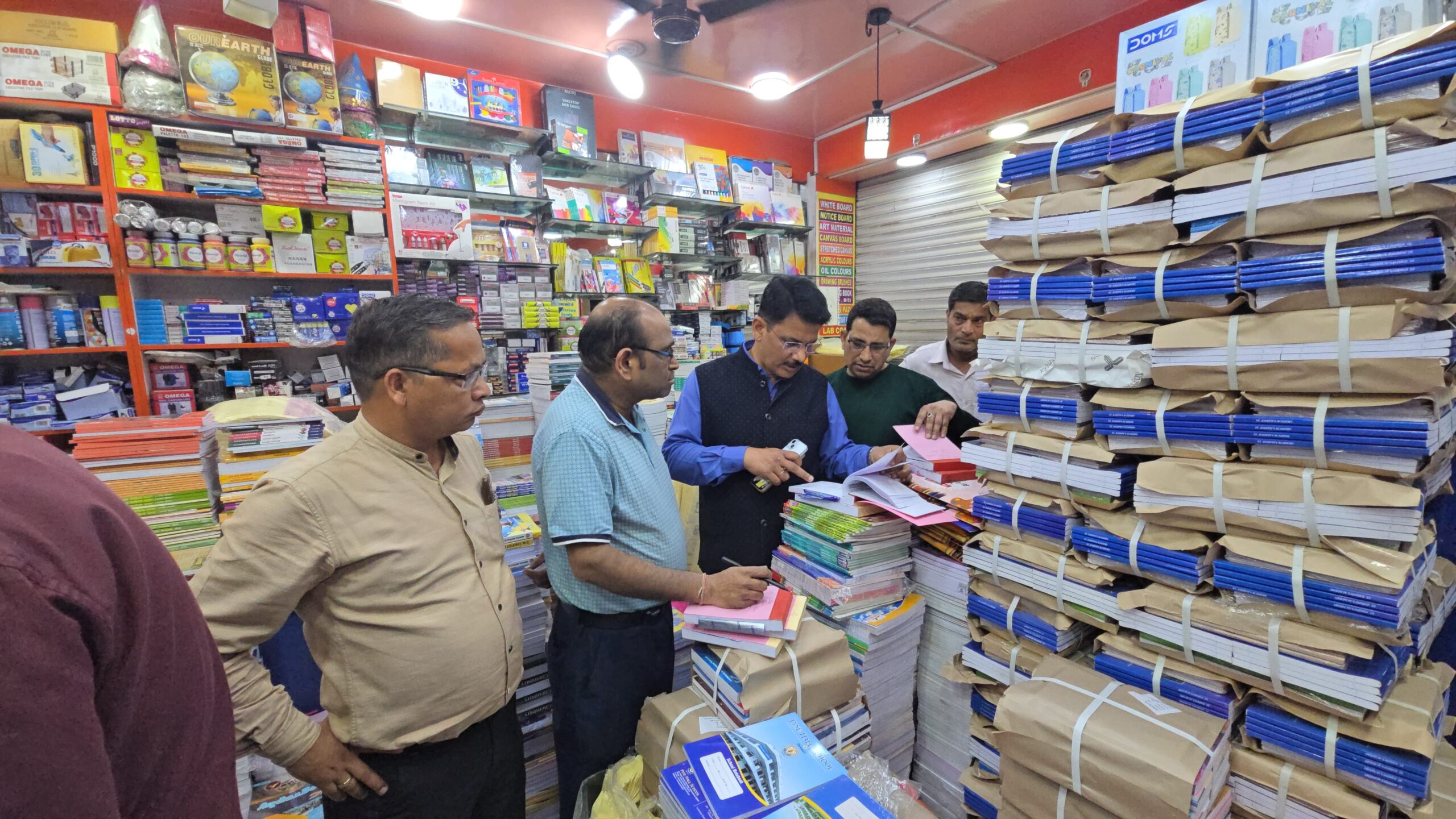 बड़े हुए मूल्य पर किताबें बेचने, बिना बिल के किताबें नोटबुक तथा अन्य सामान बेचने जीएसटी की चोरी, बिना बार कोडिंग के किताबें बेचने आदि शिकायतों के क्रम में यूनिवर्सल बुक हाउस की समस्त बिल बुक सीज कर ली गई हैं साथ ही बिना बार कोडिंग वाली किताबें सीज कर कार्रवाई प्रस्तावित की जा रही है।