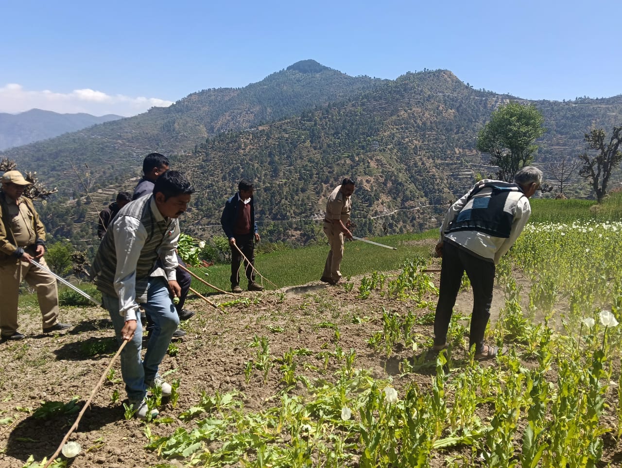 धरासू पुलिस व राजस्व की टीम द्वारा बनचौरा क्षेत्र मे छापेमारी कर 15 नाली भू-भाग पर उगाई गयी अवैध अफीम की खेती को किया नष्ट।