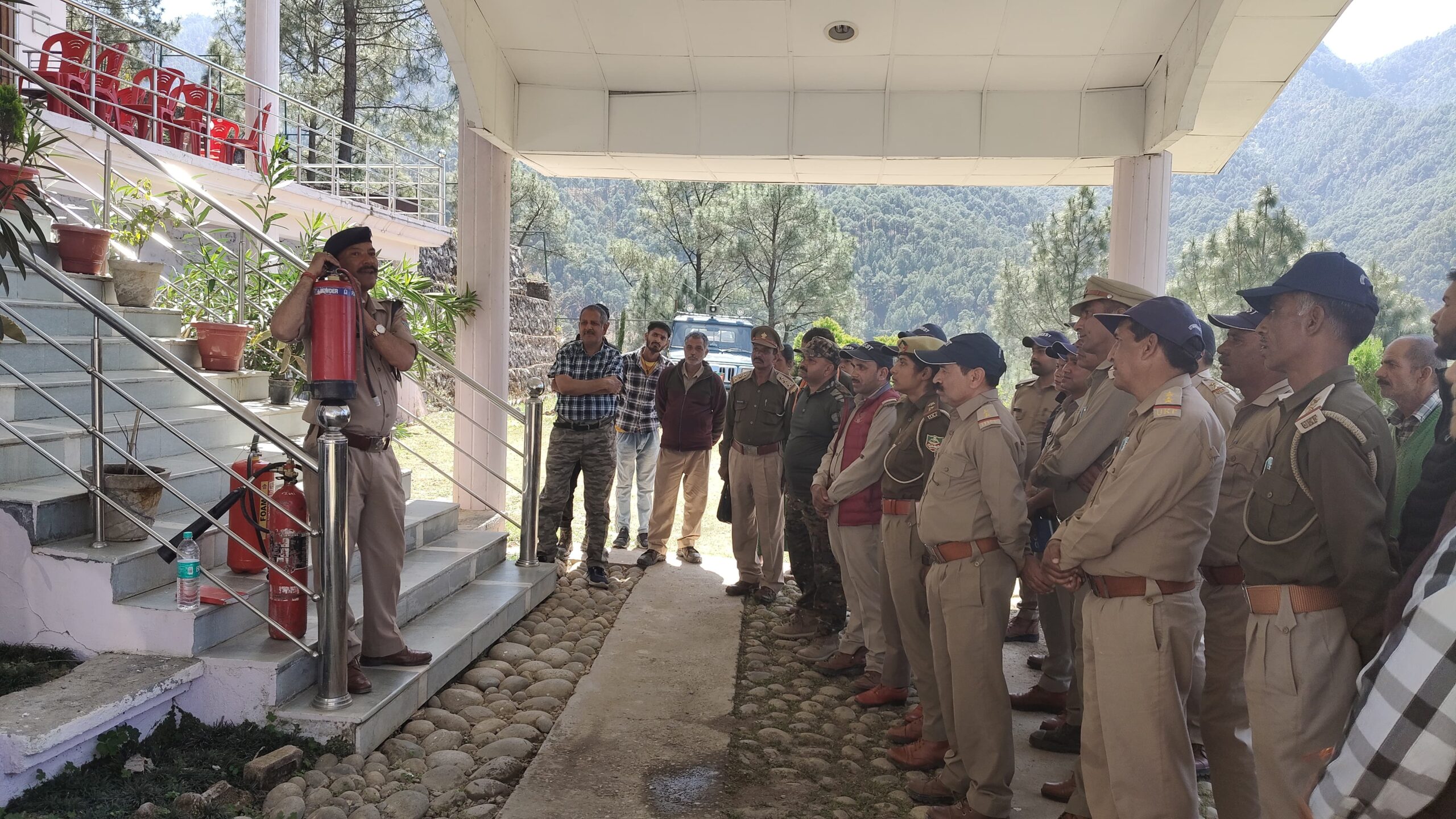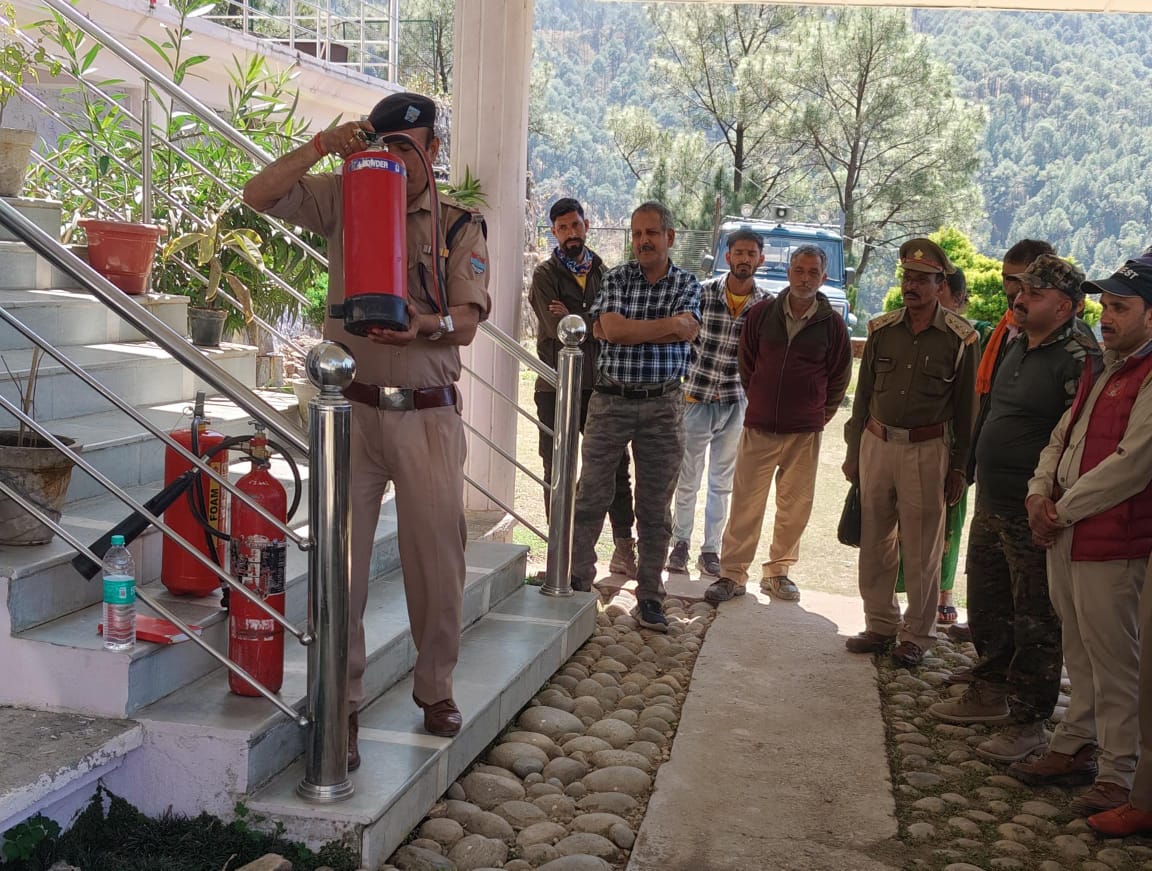 फायर सर्विस उत्तरकाशी की टीम द्वारा मुखेम रेंज वन-विभाग के कर्मियों को दी गई अग्नि सुरक्षा की जानकारी