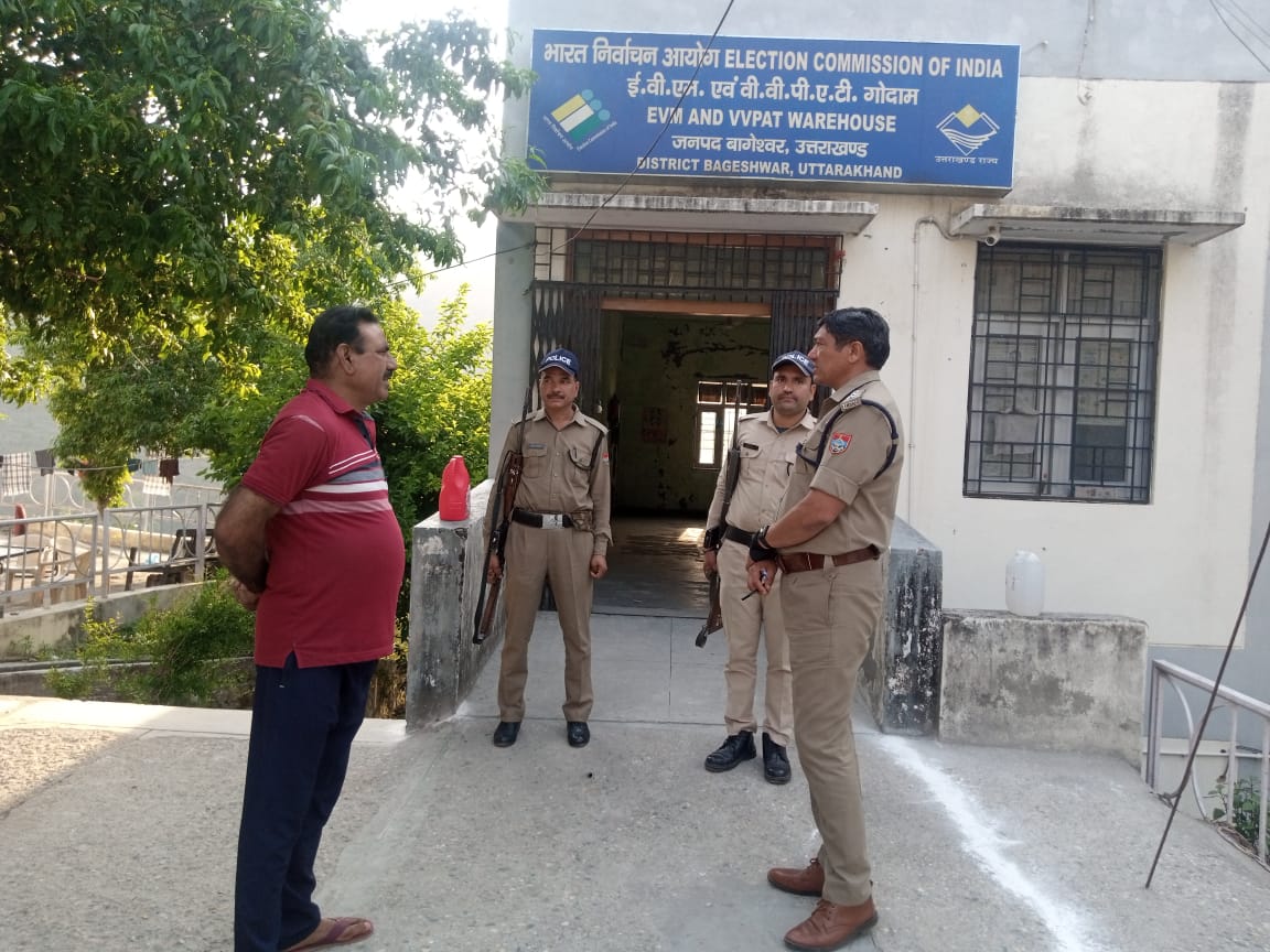 पुलिस अधीक्षक,जनपद बागेश्वर के निर्देशन में अजय लाल शाह, CO बागेश्वर द्वारा कोषागार, EVM बागेश्वर में नियुक्त एक प्लाटून पी0ए0सी0 का आकस्मिक निरीक्षण किया गया, जिसमें कार्यालयी अभिलेखों, शस्त्रागार में मौजूद अस्लाह/कारतूसों आदि का निरीक्षण किया गया दौरान निरीक्षण सभी अस्लाह, रजिस्टर सही स्थिति में मिले। महोदय द्वारा सभीअधि0/कर्म0गणों को EVM सुरक्षा ड्यूटी हेतु आवश्यक दिशा निर्देश दिये गये l