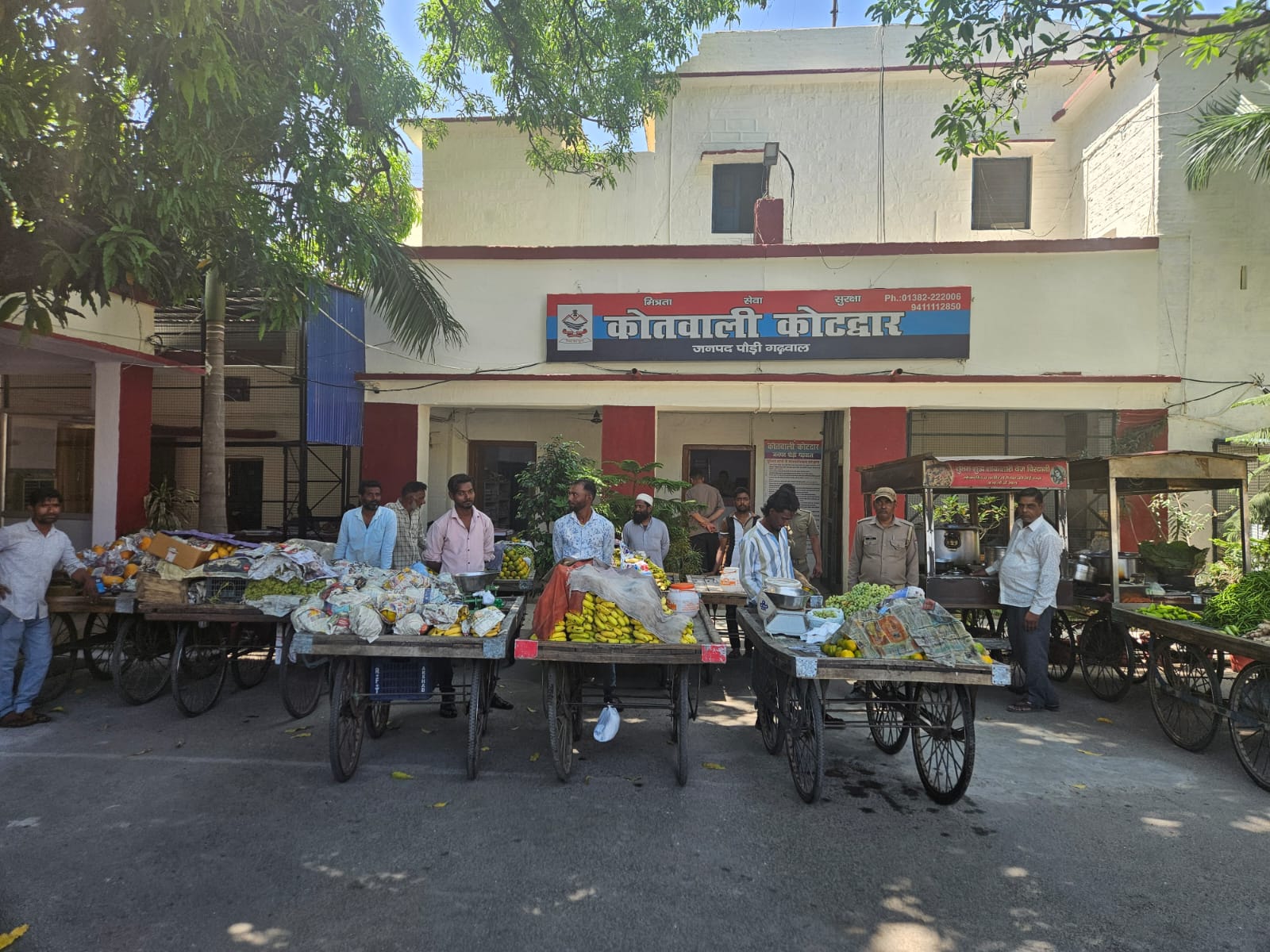 वरिष्ठ पुलिस अधीक्षक पौड़ी लोकेश्वर सिंह के निर्देशन में सड़कों पर अतिक्रमण कर रेहड़ी, ठेली, फड़ आदि लगाकर यातायात व आवागमन को बाधित करने वाले विक्रेताओं/ व्यापारियों के विरूद्ध कार्यवाही की गई है। जिसके क्रम में कोटद्वार पुलिस टीम द्वारा आज दिनांक 13.04.2025 को कोटद्वार बाजार चौकी क्षेत्रान्तर्गत झण्डा चौक,गोखले मार्ग,लालबत्ती चौक,बद्रीनाथ रोड,हनुमान मन्दिर,मालनी मार्केट व बस अड्डा रोड में सड़कों पर अवैध रूप से लगायी गयी ठेली,रेहड़ी, फल व्यापारियों/विक्रेताओं,अवैध अतिक्रमण करने तथा नो पार्किंग में अपने वाहनों को खडा कर यातायात/आवागमन को बाधित करने वाले 40 लोगों के विरूद्ध 81 पुलिस एक्ट के तहत चालानी कार्यवाही की गई। साथ ही सभी को नियमित जगहों पर ही दुकानें, ठेली लगाने व पार्किंग करने हेतु निर्देशित किया गया जिससे यातायात बाधित ना हो व आम जनमानस को भी परेशानियों का सामना ना करना पड़े।