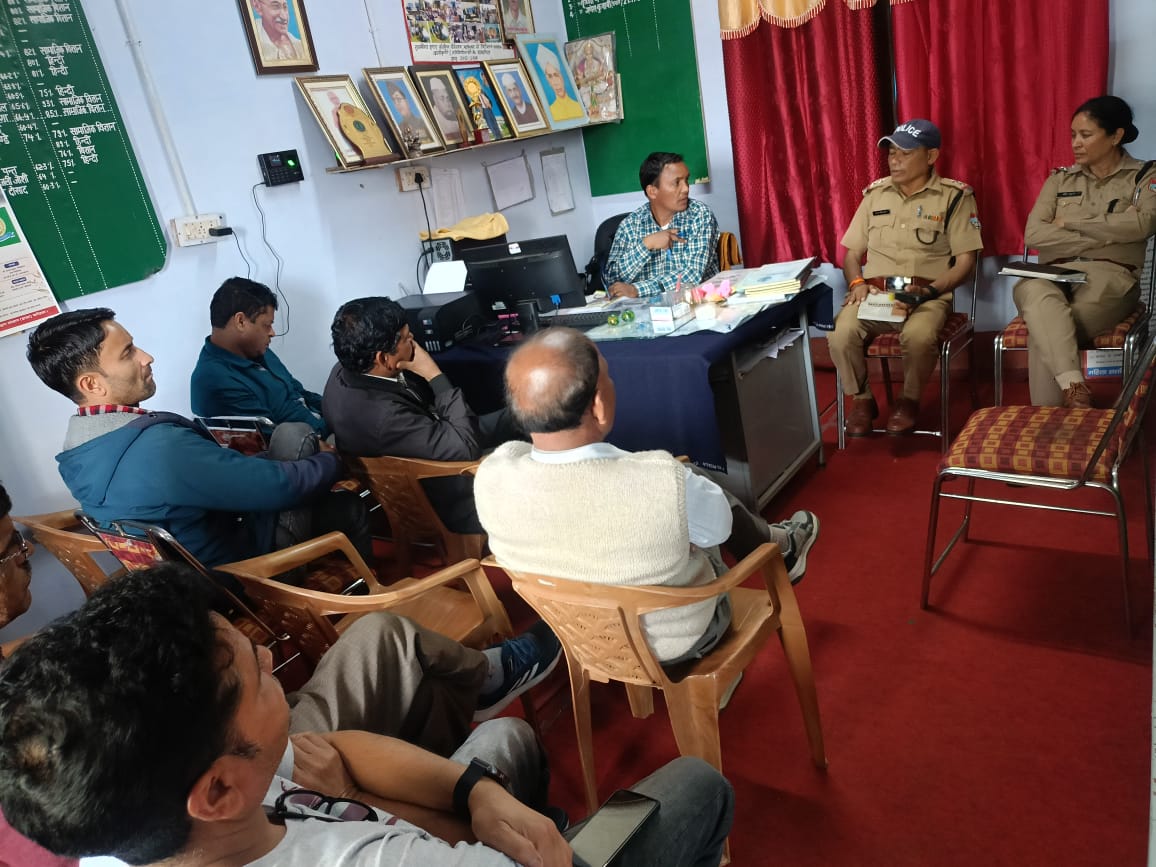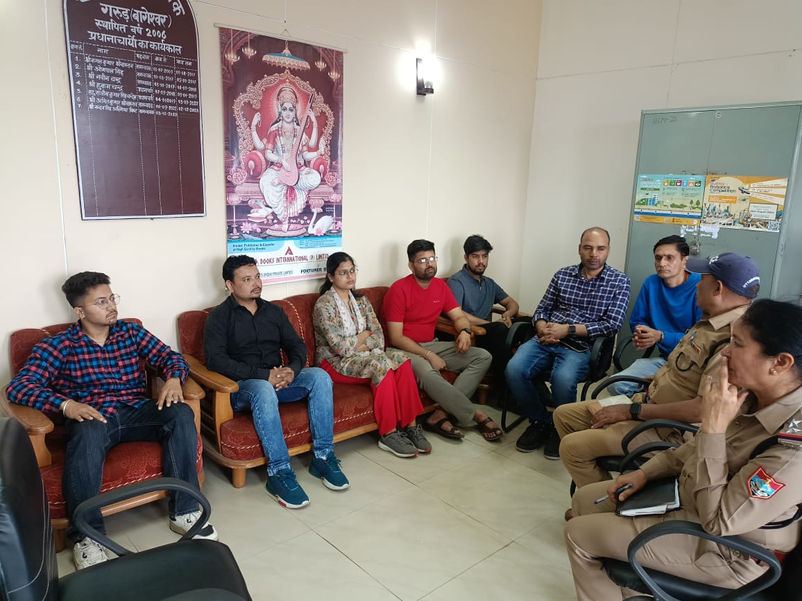 पुलिस अधीक्षक, बागेश्वर द्वारा दिये गये दिशा-निर्देशों के अनुपालन एवं पुलिस उपाधीक्षक, बागेश्वर अजय लाल साह के पर्यवेक्षण में जनपद क्षेत्रान्तर्गत चलाये जा रहे जनजागरुकता अभियान के तहत दिनांकः19.04.2025 को श्री दिनेश पन्त, थानाध्यक्ष कौसानी के नेतृत्व में अ0उ0नि0 प्रताप सिंह मेहरा, अ0उ0नि0 गीता भाकुनी, हे0का0 ललित सती व का0 देवेन्द्र सिंह द्वारा थाना क्षेत्र में रा0इ0का0 कौलाग व रा0 पॉलिटैक्निक खडेरिया में जाकर प्रधानाचार्य एवं शिक्षक स्टाफ से शिष्टाचार मुलाकात कर छात्र-छात्राओं की सुरक्षा हेतु सजग एवं जागरूक रहने के सम्बंध में गोष्ठी आयोजित की गयी जिसमें बच्चों की सुरक्षा हेतु आवश्यक विषयों पर वार्ता की गयी एवं नए आपराधिक कानून, नशे के सेवन से होने वाले दुष्परिणामों, बाल भिक्षावृत्ति, बाल श्रम, मानव तस्करी की रोकथाम, महिला अपराध व सुरक्षा, यातायात नियमों, सड़क दुर्घटना में घायलों की मदद कर नेक व्यक्ति बनने आदि के सम्बंध में जानकारी दी गयी साथ ही महिलाओं/बालिकाओं के विरुद्ध होने वाले अपराधों, अपने आस-पास बाल श्रम व बाल भिक्षावृत्ति में लिप्त बच्चों की सूचना नि:संकोच पुलिस को बताने और पुलिस द्वारा हर सम्भव सहायता का आश्वासन दिया गया।