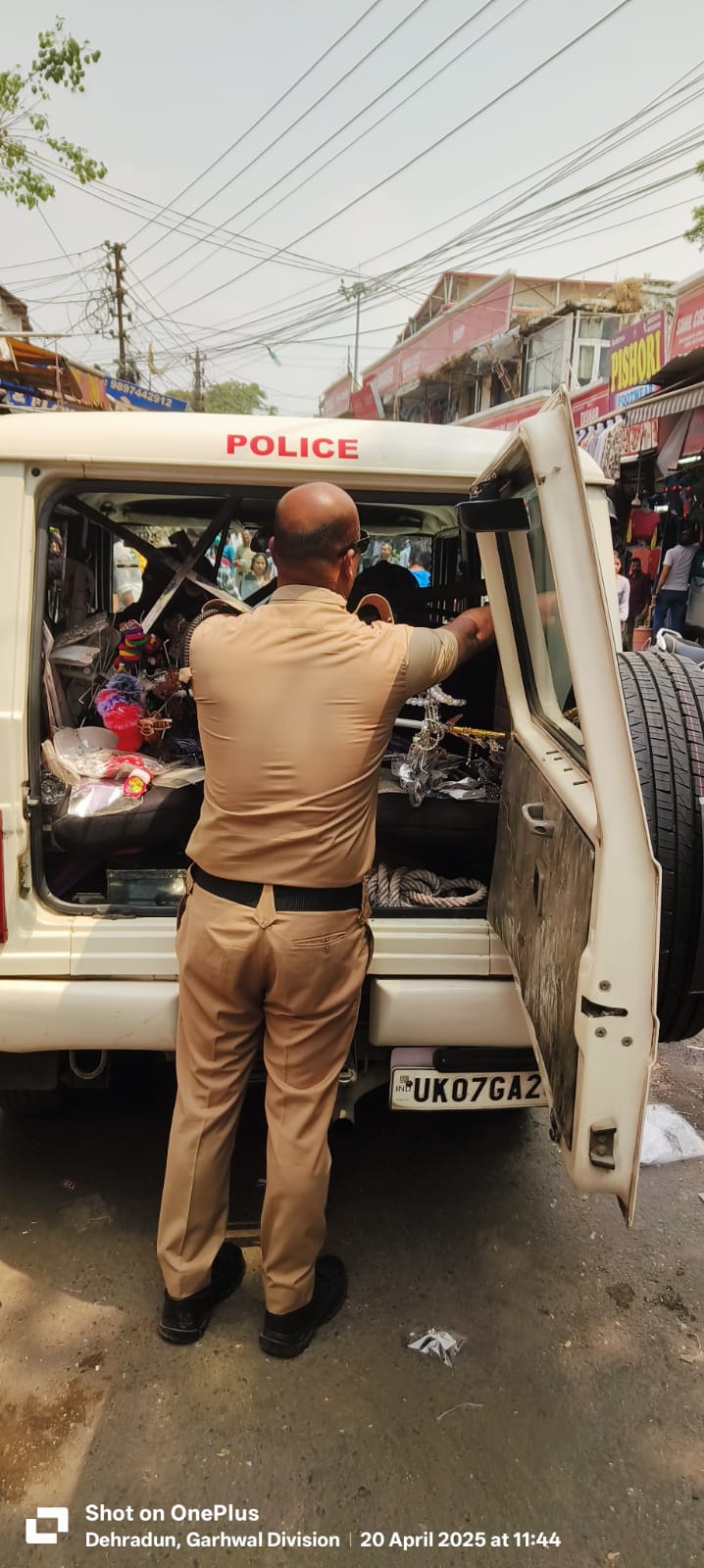 वरिष्ठ पुलिस अधीक्षक देहरादून द्वारा सभी थाना प्रभारियों को अपने- अपने थाना क्षेत्र में मुख्य बाजारों, सड़क किनारे फुटपाथों पर अस्थाई अतिक्रमण कर आम जन के आवागमन व यातायात व्यवस्था को बाधित करने वाले व्यक्तियों के विरुद्ध कार्रवाई के निर्देश दिए गए हैं। उक्त निर्देशो के क्रम में आज दिनांक 20/04/2025 को कोतवाली नगर पुलिस द्वारा थाना क्षेत्रान्तर्गत पलटन बाजार, तहसील चौक, घण्टाघर, आदि स्थानों में अस्थाई अतिक्रमण करने वालो के विरुद्ध अभियान चलाते हुए कार्यवाही की गई। अभियान के दौरान सड़क किनारे फुटपाथों व दुकानों के बाहर मुख्य मार्गो पर अस्थाई अतिक्रमण करने वाले 27 दुकानदारों के पुलिस द्वारा 83 पुलिस एक्ट 2,70,000/-₹ के कोर्ट के चालान किये गए, साथ ही दुकानों के बाहर अतिक्रमण कर लगाए गए 20 लोहे के रिंगों को पुलिस द्वारा जब्त किया गया।
