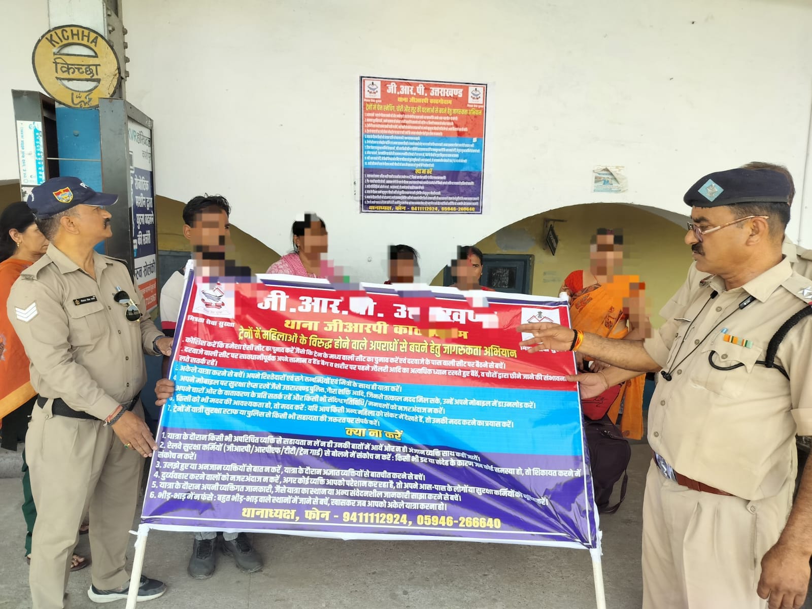 पुलिस अधीक्षक जीआरपी, उत्तराखंड के आदेशानुसार व अपर पुलिस अधीक्षक जीआरपी के दिशा-निर्देशन में तथा पुलिस उपाधीक्षक के निकट पर्यवेक्षण में महिलाओं एवम बच्चों की सुरक्षा, चैन स्नेचिंग, चोरी, लूट, के संबंध में चलाए जा रहे विशेष अभियान व साइबर अपराधों की रोकथाम तथा नशे के विरुद्ध जनजागरूकता अभियान के अनुपालन में थाना जीआरपी काठगोदाम द्वारा रेलवे स्टेशन काठगोदाम व लालकुआं पर रेल यात्रियों को महिलाओ व बच्चों की सुरक्षा व सम्बन्धित अपराधों एवम उनके बचाव के बारे में जानकारी दी गई तथा सत्यापन अभियान के अंतर्गत वेंडरों के जरूरी दस्तावेज थाने पर जमा कराए।