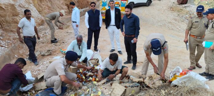 न्यायालय के आदेश पर पिथौरागढ़ पुलिस ने नष्ट की भारी मात्रा में अवैध शराब