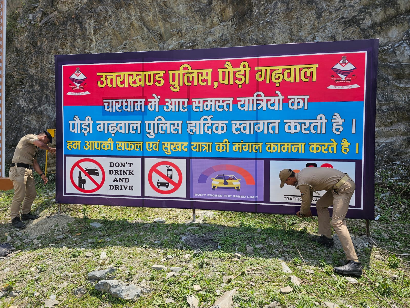 आगामी शुरू होने वाली चारधाम यात्रा के दृष्टिगत पौड़ी पुलिस द्वारा अपनी तैयारी को पूरा करने के क्रम में चार धाम यात्रा को सरल व सुगम बनाने हेतु यात्रा मार्गों,प्रमुख स्थलों, पार्किंग आदि की जानकारी हेतु जरूरी साइन बोर्डों,फ्लैक्सी व आवश्यक दिशा निर्देश सूचनापट को जनपद के मुख्य यात्रा मार्गों पर लगाया जा रहा है जिससे कि यात्रा में बाहर से आने वाले यात्रियों को अपने गंतव्य तक पहुंचने के लिए किसी भी प्रकार की परेशानियों का सामना ना करना पड़े और इन दिशासूचकों व निर्देशों का प्रयोग कर अपनी यात्रा को और भी सफल बना सकें। इसके साथ ही यातायात नियमों का पालने करने सम्बन्धी साइन बोर्डों को लगाया जा रहा है जिसका उद्देश्य यात्रा करने के दौरान ट्रैफिक नियमों का भी कड़ाई से पालन करवाना है जिससें किसी को भी परेशानियों का सामना ना करना पड़े। साथ ही चार धाम यात्रा पर आने वाले पर्यटक/श्रद्धालुओं तथा आमजन से पौड़ी पुलिस की अपील है कि इस चार धाम यात्रा को सफल बनाने में पलिस व प्रशासन का सहयोग करें।