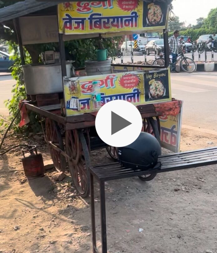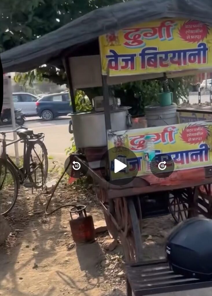 बिना लाइसेंस के देवी देवताओं के नाम पर बिरियानी कि ठेली लगा रहे व्यक्ति के पास आधार कार्ड तक जेब में नहीं