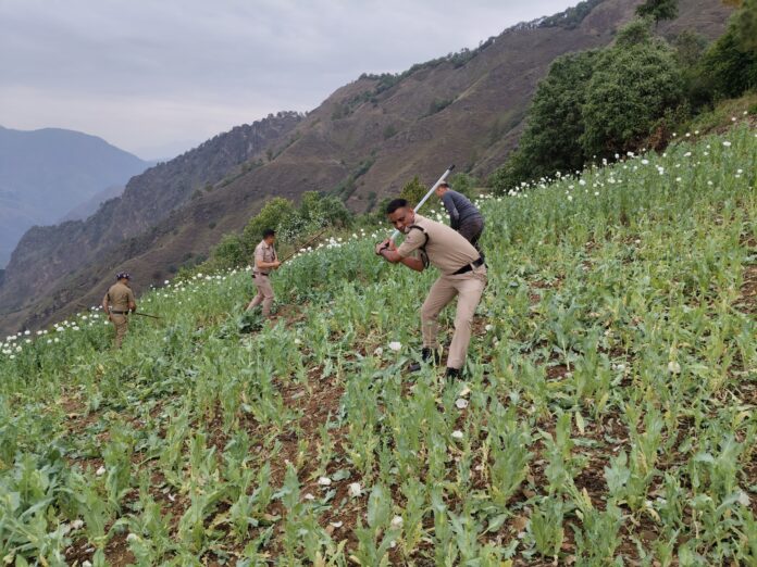 पुरोला पुलिस, SOG व राजस्व की टीम द्वारा 160 नाली भू-भाग पर अवैध अफीम की खेती को किया गया नष्ट, अफीम की खेती करने वाले 4 लोगों पर एफआईआऱ दर्ज।