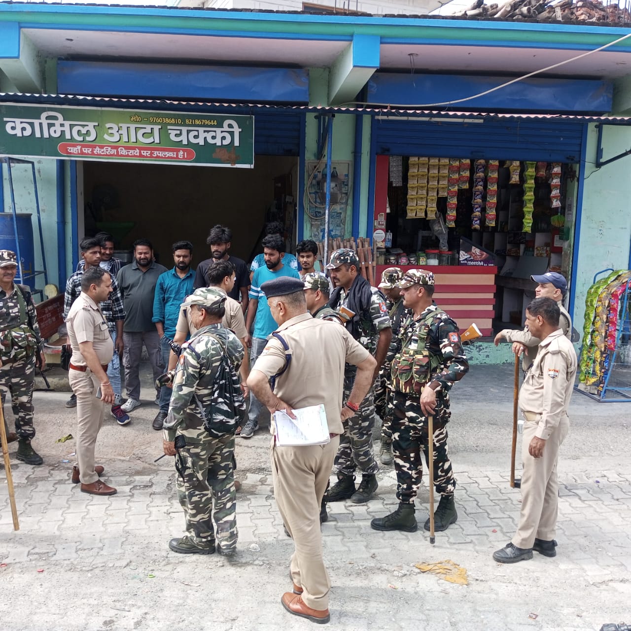 पुलिस की अलग- अलग टीमो द्वारा अर्धसैनिक बलों के साथ बाहरी व्यक्तियों के सत्यापन हेतु की गयी कार्रवाई