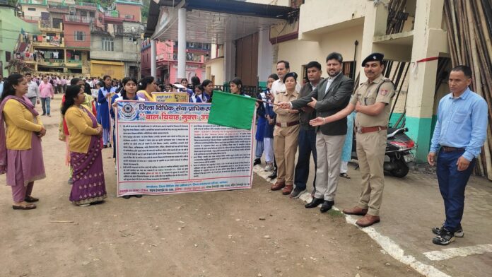 जिसके क्रम में आज दिनांक-08.05.25 को प्रभारी महिला हेल्प लाइन /ए0एच0टी0यू0 मीना रावत एवं पुलिस टीम द्वारा जिला प्रशासन की टीम के साथ संयुक्त रुप से जागरुकता अभियान चलाया गया जिसमें स्कूली बच्चो के साथ रैली निकालकर आम जनता को बढ़ते अपराधों से बचाव के लिए जागरुक किया गया। जिसमें स्थानीय जनता व स्कूली बच्चों को सड़क दुर्घटनाओं से बचने के बारे में जानकारी, यातायात चिन्हो/नियमों के बारे में विस्तृत जानकारी दी गई। साथ ही बताया कि 18 वर्ष से कम आयु के युवक एवं युवतियों को ड्राइविंग लाइसेंस उपलब्ध नही होता। वाहन चलाते हुए पकड़े जाने पर जुर्माने के साथ-साथ नाबालिक के अभिभावकों के ऊपर जुर्माने का भी प्रावधान है। मोटर वाहन अधिनियम के नये नियमों के बारे में भी अवगत कराया गया। साथ ही स्कूली बच्चो व आम जनमानस को UTTARAKHAND POLICE APP_ , गौरा शक्ति फीचर के सम्बन्ध में जानकारी देकर रजिस्ट्रेशन की प्रक्रिया व नशे के दुष्परिणामों, साइबर क्राइम, बाल-विवाह, महिला/बलिकाओ से सम्बंधी अपराधों, डायल 112, बड़ते साइबर अपराधों साइबर हेल्पलाइन नंबर 1930 के बारे में विस्तार पूर्वक बताया गया।