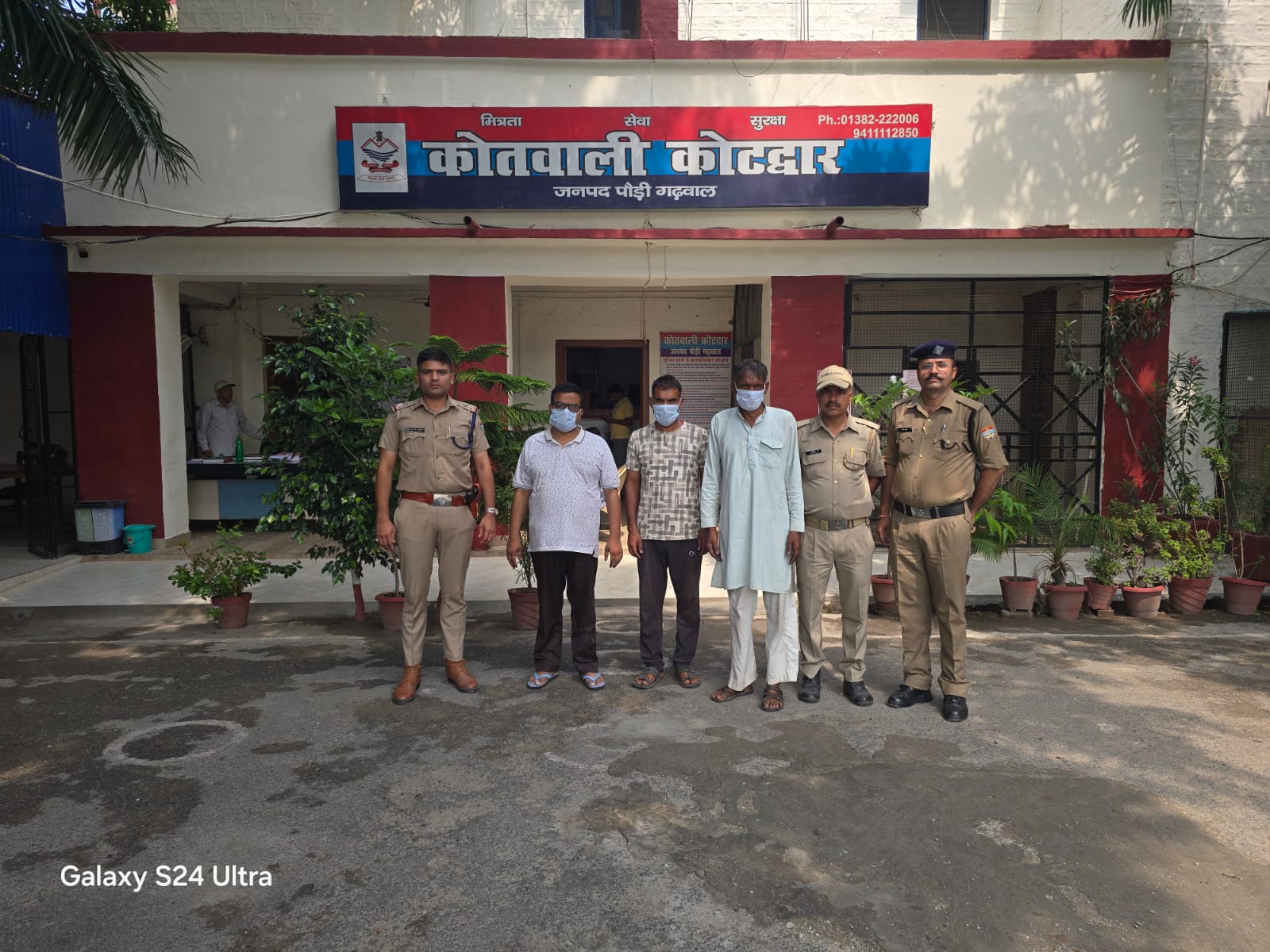 जिसके क्रम में अपर पुलिस अधीक्षक कोटद्वार चन्द्रमोहन सिंह व क्षेत्राधिकारी कोटद्वार निहारिका सेमवाल के पर्यवेक्षण व प्रभारी निरीक्षक कोटद्वार श्री रमेश सिंह तनवार के नेतृत्व में पुलिस टीम गठित की गयी। विवेचक द्वारा की गई कुशल विवेचनात्मक कार्यवाही जिसमें साक्ष्य संकलन करने पर आरोपों की पुष्टि होने पर गठित पुलिस टीम द्वारा की गई कुशल पतारसी सुरागसी तथा बेहतर सर्विलांस की मदद से उक्त प्रकरण में सम्मलित 03 नामजद अभियुक्तों (1.अनिल, निवासी ग्राम-बहादरपुर काँठ, जिला मुरादाबाद, 2.चैतराम, निवासी ग्राम-बहादरपुर काँठ, जिला-मुरादाबाद, 3. दिनेश जोशी निवासी-मोहडा पट्टी काँठ, जिला मुरादाबाद उत्तर प्रदेश) को पुलिस टीम द्वारा मुरादाबाद से गिरफ्तार किया गया जिनको माननीय न्यायालय में पेश कर जेल भेज दिया गया है। अभियुक्तों के आपराधिक इतिहास की जानकारी की जा रही है साथ ही इस प्रकरण में सलिप्त अन्य अभियुक्तों की गिरफ्तारी हेतु पुलिस टीम लगातार प्रयासरत है।