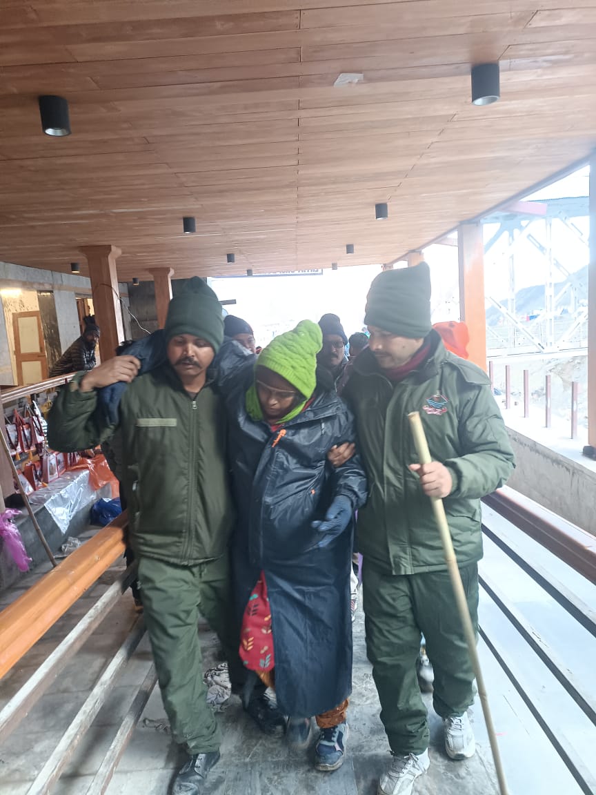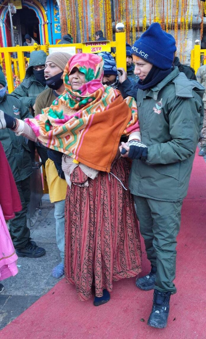 श्री केदारनाथ के दर्शन हेतु आयी एक श्रद्धालु जिनका स्वास्थ्य खराब होने के कारण चलने में दिक्कत हो रही थी, ऐसी स्थिति में ड्यूटी में तैनात पुलिस जवानों द्वारा मानवता का परिचय देते हुए उक्त श्रद्धालु को सहारा देकर श्री केदारनाथ जी के सुगम दर्शन करवाये गये। वहीं केदारनाथ धाम पहुंची बुजुर्ग माता जी को ड्यूटी पर तैनात महिला कार्मिक द्वारा सहारा देकर दर्शन कराने में मदद की गयी है। पुलिस के स्तर से मिलने वाली इस मदद से श्रद्धालु तथा उनके परिजन खुशी से अभिभूत हो गये तथा उनके द्वारा पुलिस का कोटि-कोटि आभार प्रकट किया गया।