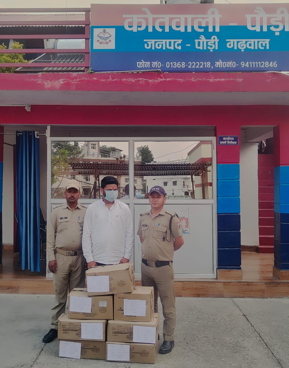 इसी क्रम में क्षेत्राधिकारी सदर त्रिवेन्द्र सिंह राणा के पर्यवेक्षण में प्रभारी कोतवाली पौड़ी कमलेश शर्मा के नेतृत्व में पुलिस टीम द्वारा दैनिक चेकिंग के दौरान आज दिनांक 15.05.2025 को एक व्यक्ति जयकृत उर्फ जैकी निवासी- पौड़ी को 07 पेटी ( 192 पव्वे सोलमेट व्हिस्की, 48 हाफ सोलमेट व्हिस्की व12 बोतल सोलमेट व्हिस्की) अवैध शराब का परिवहन करते हुए अगरोड़ा के पास से गिरफ्तार किया गया। गिरफ्तारशुदा अभियुक्त के विरूद्ध कोतवाली पौड़ी पर मु0अ0सं0-28/2025, धारा- 60/72 आबकारी अधिनियम अभियोग दर्ज कर नियमानुसार वैधानिक कार्रवाई की गई।