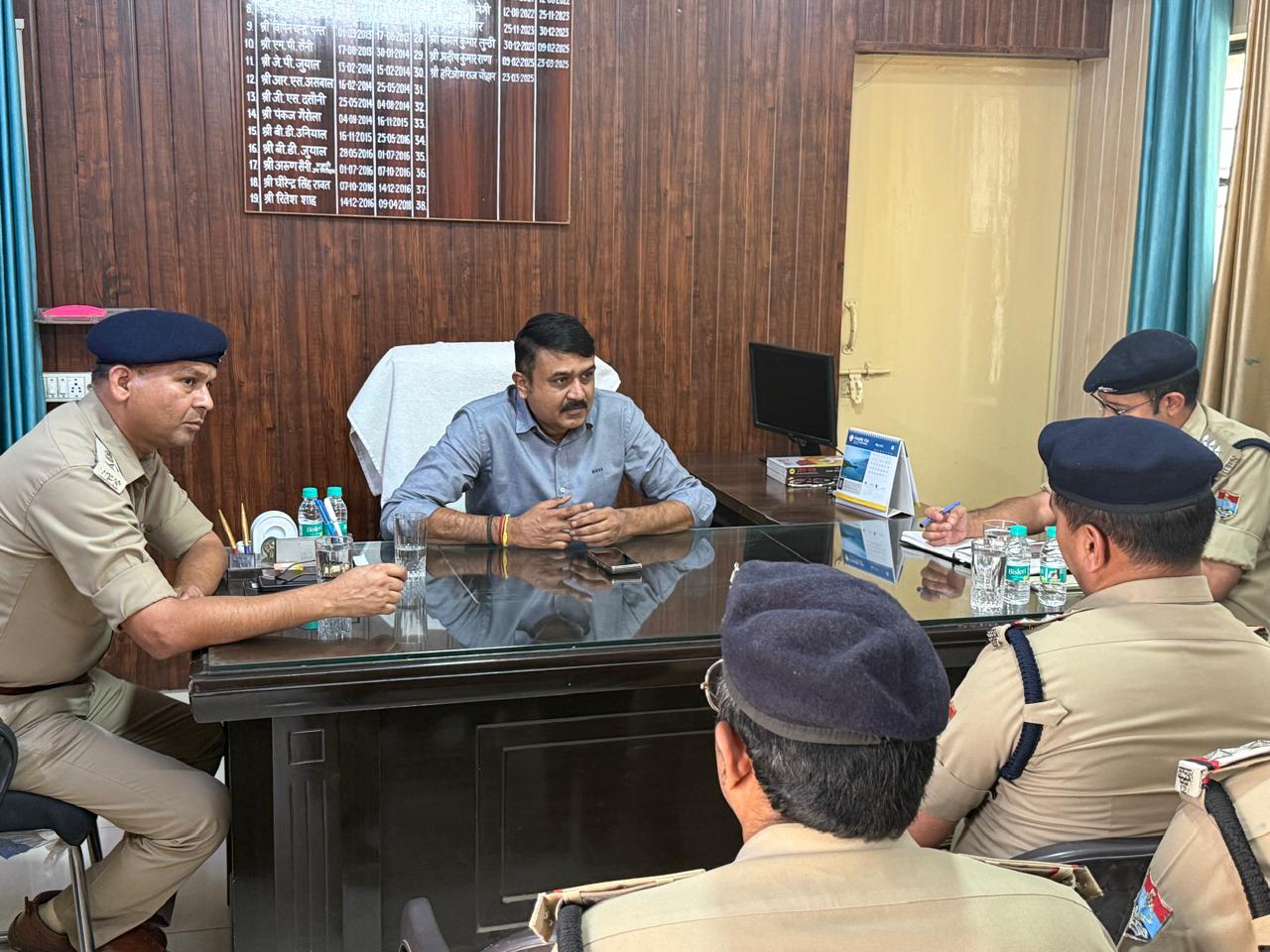 आज दिनांक – 15/05/2025 को वरिष्ठ पुलिस अधीक्षक देहरादून द्वारा कोतवाली पटेलनगर पहुंचकर कोतवाली में नियुक्त अधिकारी/कर्मचारियों के कार्यों की समीक्षा की, साथ ही विवेचनाधीन अभियोगों तथा लम्बित प्रार्थना पत्रों के सम्बन्ध में प्रभारी निरीक्षक पटेलनगर से जानकारी प्राप्त की गई। इस दौरान एसएसपी देहरादून द्वारा उपस्थित अधिकारियों/कर्मचारियों को ब्रीफ करते हुए उन्हें पूर्ण कर्तव्यनिष्ठा के साथ अपने कार्यों का निर्वहन करने हेतु निर्देशित किया गया साथ ही कर्तव्यों के प्रति शिथिलता अथवा लापरवाही बरतने पर सख्त कार्यवाही की चेतावनी दी। पुलिस की कार्यप्रणाली में पारदर्शिता लाने के लिये एसएसपी देहरादून द्वारा चौकी आई0एस0बी0टी0 में नियुक्त 11 पुलिसकर्मियों को जनपद के अन्य थानों में स्थानान्तरित किया गया।