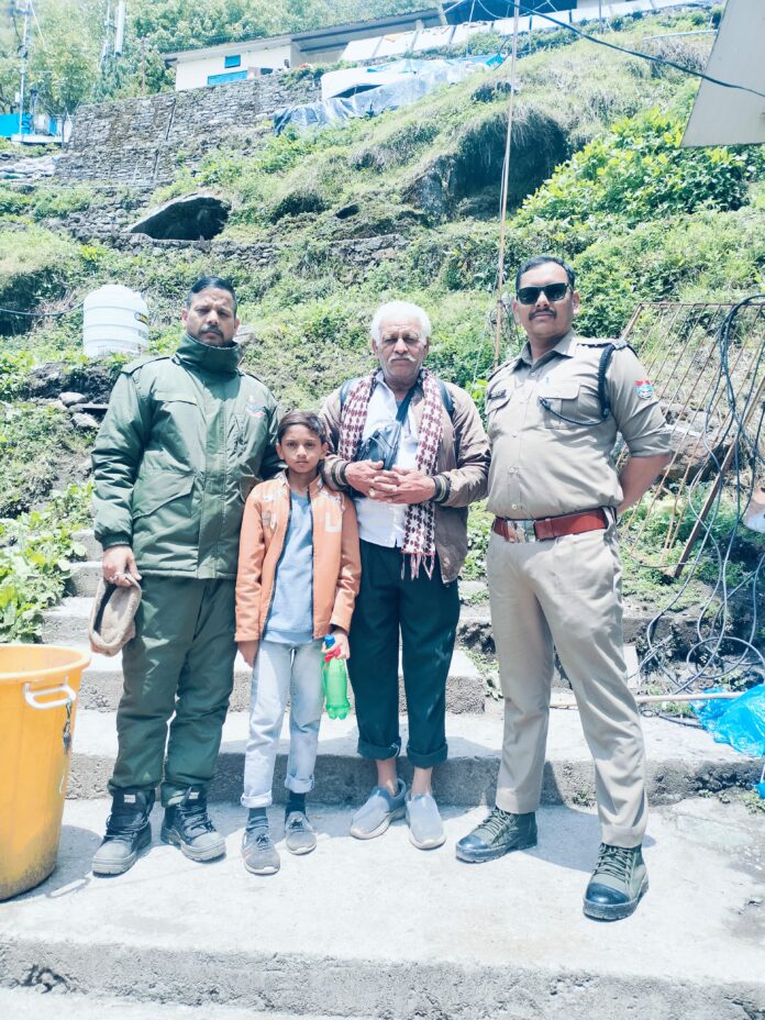 आज दिनांक 18.05.2025 को श्री केदारनाथ धाम पैदल मार्ग जंगलचट्टी से ऊपर मीठापानी नामक स्थान के आस-पास आठ वर्षीय बालक कान्हा पुत्र प्रकाश चौहान निवासी ग्राम पीपलगढ़ी थाना धर्मपुरी मध्यप्रदेश जो अपने नाना-नानी जी के साथ केदारनाथ धाम यात्रा पर आया था और उनसे बिछड़ गया था। चौकी प्रभारी भीमबली यशपाल सिंह रावत ने अधीनस्थ पुलिस बल सहित उक्त बालक को सुरक्षा के दृष्टिगत चौकी भीमबली परं लाया गया व बालक के परिजन की तलाश हेतु अनाउंसमेंट, बायरलेस सेट के माध्यम से तथा यात्रा पर आने जाने वाले श्रद्धालुओं से पूछताछ कर आवश्यक प्रयास किये गये। काफी देर तलाशने के उपरान्त बालक के नाना इंद्र सिंह पुत्र स्व0 श्री चिमन सिंह निवासी ग्राम सोलंकी जिला बढ़वानी मध्यप्रदेश चौकी भीमबली आए जिनके द्वारा अवगत कराया गया कि उनका नाती कान्हा उनके साथ भीमबली तक साथ में था रास्ते में काफी भीड़़-भाड़ होने के कारण वह उनसे बिछड़ गया था जिसे वे ढूंढते ढूंढते जंगलचट्टी से नीचे चले गए। जब वह परेशान व थक हारकर एक दुकान पर बैठे तथा उनके द्वारा अपने नाती के बारे में आने जाने वाले लोगों को अपने नाती का मोबाइल में फोटो दिखाया गया तो उनमें से एक यात्री ने उनके नाती को पहचान लिया और उनके नाती के भीमबली पुलिस चौकी में होने की बात बताई गयी। तब वे यहां भीमबली चौकी आया। बालक को सकुशल देख बालक के नाना जी द्वारा पुलिस का तहे दिल से आभार प्रकट कर अपने नाती को साथ लेकर अपने गन्तव्य के लिए प्रस्थान किया गया है।