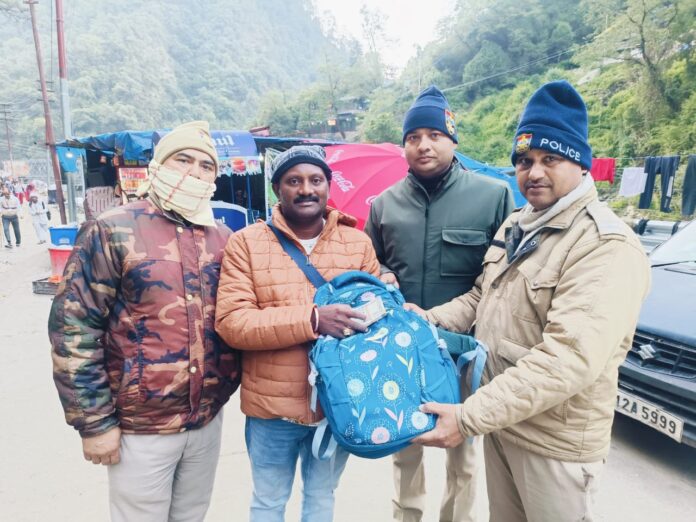 केदारनाथ धाम यात्रा पर आये श्रद्धालु का खोया हुआ बैग जिसमें ₹40 हजार रखे थे, को सकुशल बरामद कर किया गया वापस।