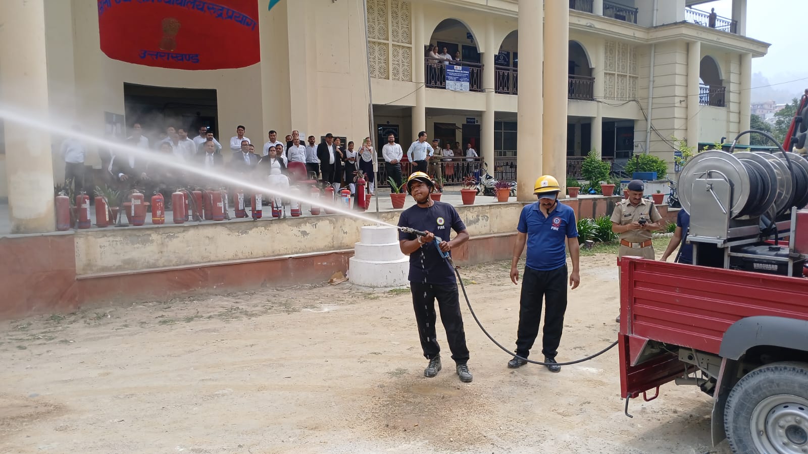 ➡ आज दिनांक 21.05.2025 को मा0 जनपद न्यायाधीश महोदय के आदेशानुपालन में एवं न पुलिस अधीक्षक के निर्देशानुसार जिला न्यायालय परिसर में प्रभारी अग्निशमन अधिकारी के नेतृत्व में फायर स्टेशन रुद्रप्रयाग टीम द्वारा एक अग्निशमन मॉक ड्रिल एवं अग्नि सुरक्षा प्रशिक्षण कार्यक्रम का आयोजन किया गया। यह कार्यक्रम जिला न्यायालय प्रशासन एवं अग्निशमन विभाग के संयुक्त तत्वावधान में आयोजित किया गया, जिसका उद्देश्य आपातकालीन परिस्थितियों में त्वरित प्रतिक्रिया एवं सुरक्षा उपायों की जानकारी देना था।