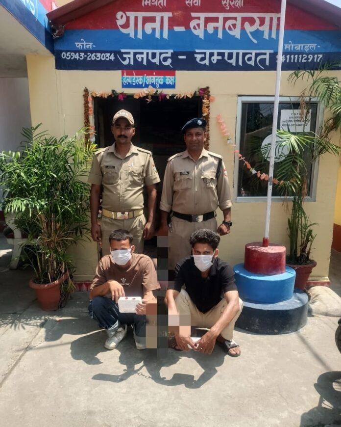 उक्त के क्रम मे दिनांक 26.05.2025 को जनपद चम्पावत के थाना बनवसा क्षेत्रान्तर्गत थाना बनवसा बैराज पुलिस एंव एस0ओ0जी0 द्वारा संयुक्त रूप से कार्यवाही करते हुए संयुक्त चैकिंग के दौरान घनुष पुल चौकी बैरियर के निकट खटीमा- बैराज बन्धा मार्ग से अभियुक्त 1- सुरेंद्र ठकुराठी पुत्र पुष्कर ठकुराठी निवासी ग्राम बागफाटा वार्ड नं 19 नगर पालिका भीमदत्त कंचनपुर महेन्द्र नगर नेपाल उम्र 24