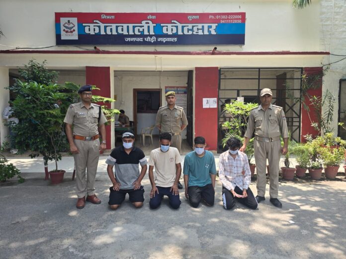 घराट पुल कोटद्वार पर युवक को मारपीट कर घायल करने वाले 04 अभियुक्तों को कोटद्वार पुलिस ने किया गिरफ्तार,घटना का वीडियो सोशल मीडिया पर हो रहा था वायरल।