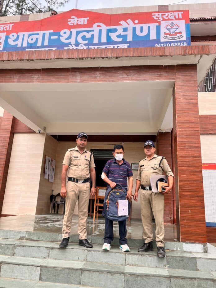 चोरी की घटना के अनावरण हेतु और चोर की शीघ्र गिरफ्तारी करने हेतु प्रभारी निरीक्षक थलीसैण श्री लाखन सिंह के नेतृत्व में पुलिस टीम गठित की गई गठित टीम द्वारा कुशल सुरागरसी पतारसी कर घटना में संलिप्त अभियुक्त विजय सिंह को थलीसैण बाजार के पास से गिरफ्तार कर अभियुक्त के कब्जे से एक बकरी और दांव (खुंखरीनुमा) तथा घटना में प्रयुक्त ऑल्टो कार वाहन संख्या UK12TA-1122 को बरामद किया गया। उपरोक्त चोरी की बकरी को सकुशल वादी के सुपुर्द किया गया तथा गिरफ्तारशुदा अभियुक्त को माननीय न्यायालय के समक्ष पेश कर आवश्यक कार्यवाही कर जेल भेज दिया गया।