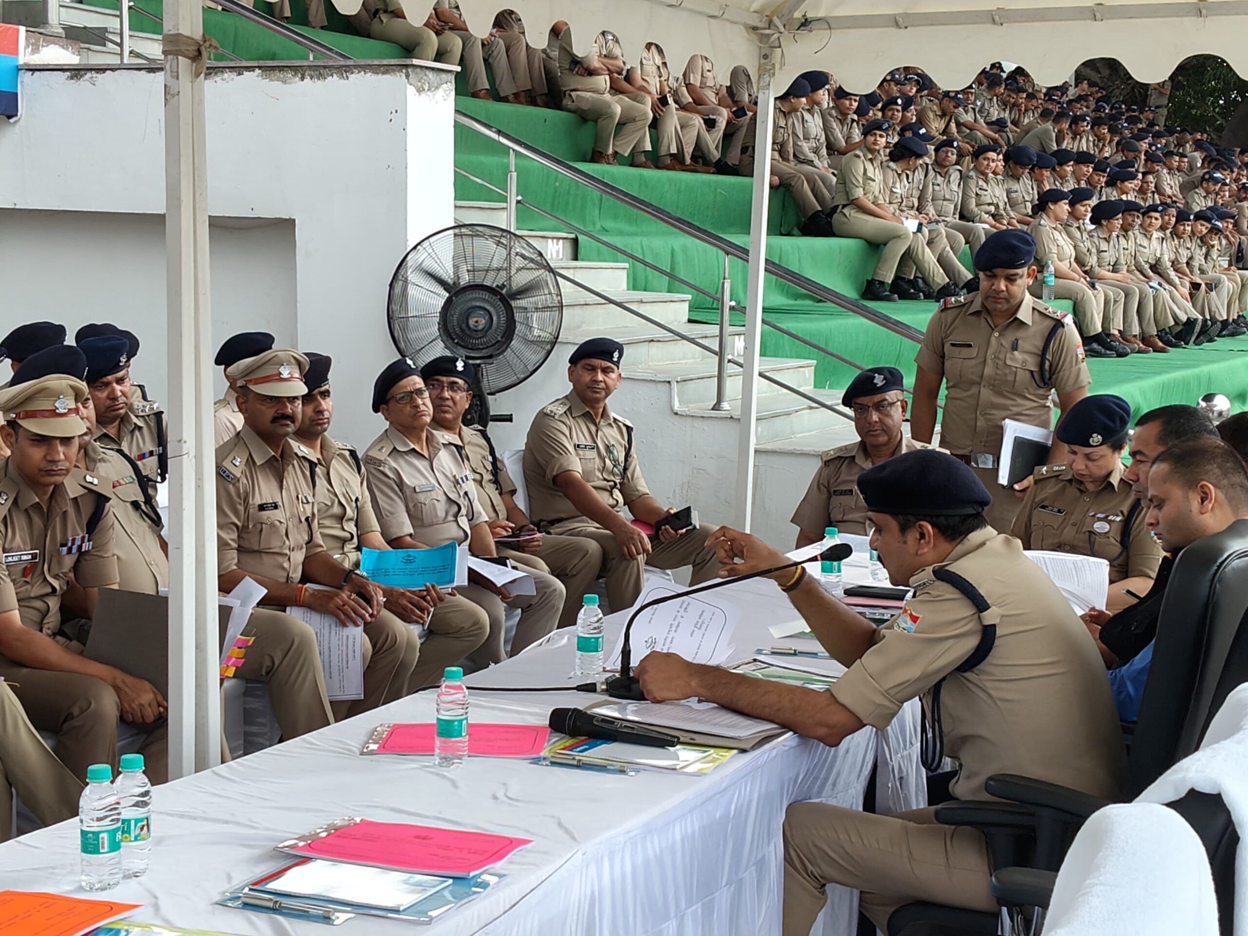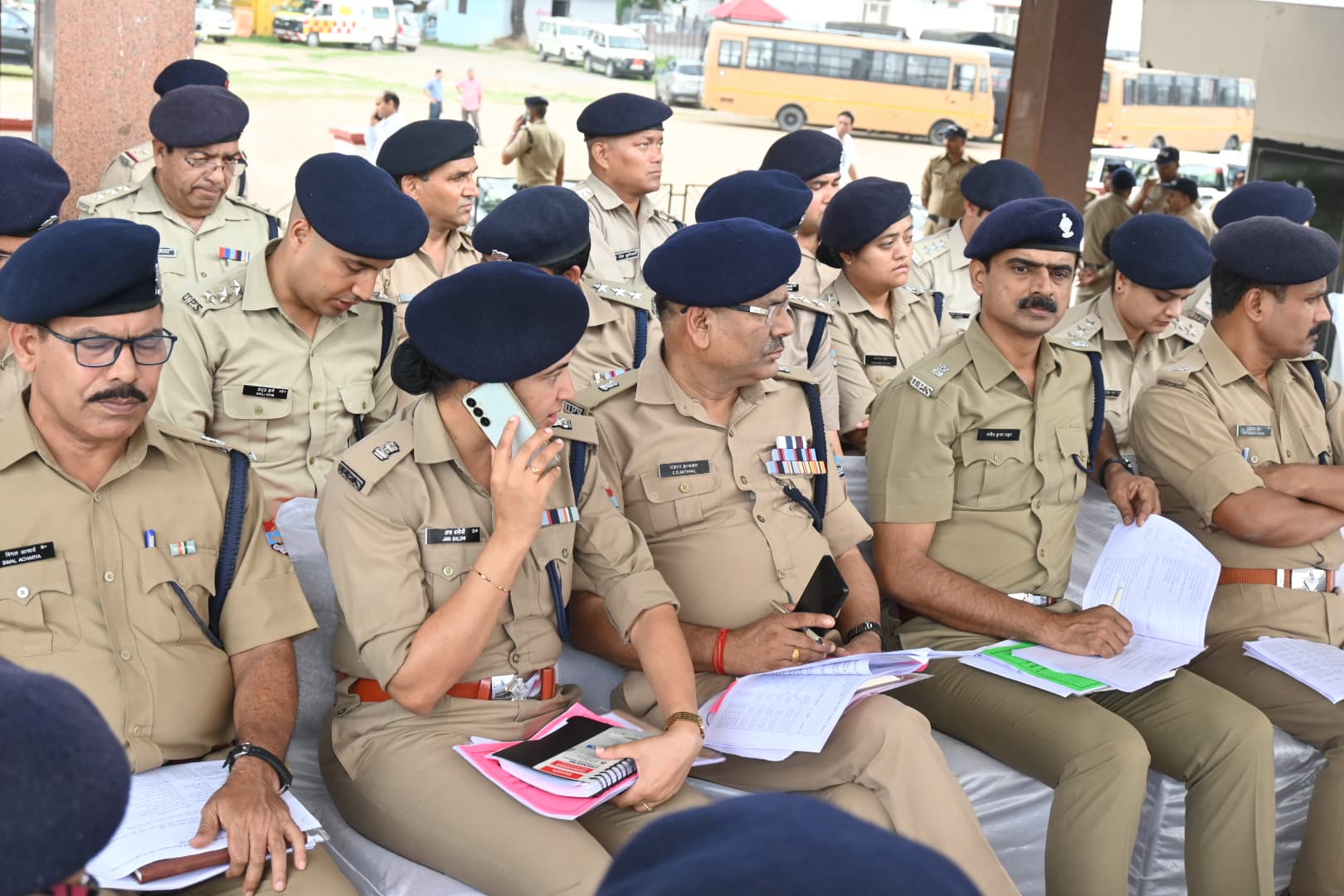 आज दिनांक 17-06-2025 को पुलिस लाइन देहरादून में अपर पुलिस महानिदेशक अपराध एवं कानून व्यवस्था महोदय व अपर पुलिस महानिदेशक अभिसूचना महोदय व अन्य उच्चाधिकारी गणों द्वारा वीवीआईपी महोदय के जनपद देहरादून में प्रस्तावित भ्रमण एवं प्रवास कार्यक्रम के दृष्टिगत उच्चाधिकारियों द्वारा सुरक्षा ड्यूटी में नियुक्त पुलिस बल की ब्रीफिंग की गई। ब्रीफिंग के दौरान कार्यक्रम हेतु किये गये सुरक्षा प्रबन्धों की समीक्षा करते हुए वर्तमान सुरक्षा परिदृश्य में सभी अधिकारी/कर्मचारीगणों को सजग एवं सतर्क रहकर अपने कर्तव्यों का निर्वहन करने हेतु निर्देशित किया गया।