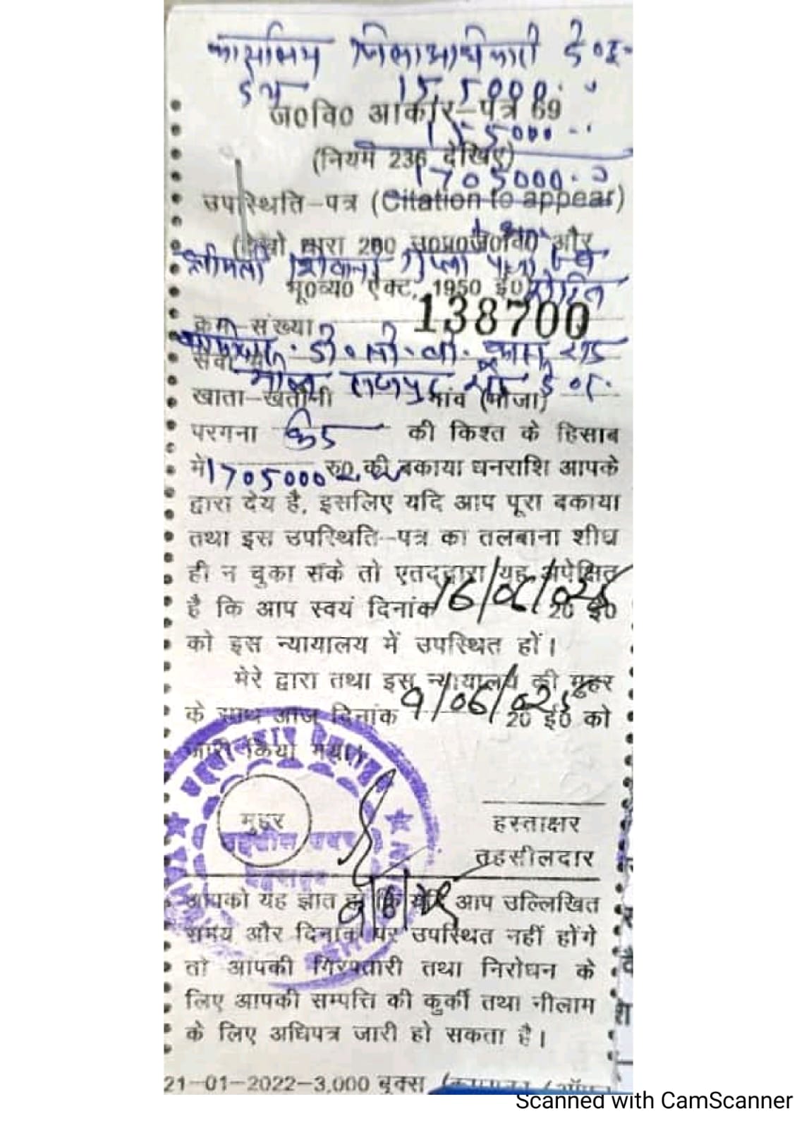 जिला प्रशासन द्वारा 09 जून को सम्बन्धित बैंक प्रबन्धक को रू0 1705000 आरसी जारी करते हुए 16 जून तक आरसी जमा करने के दिए थे निर्देश।