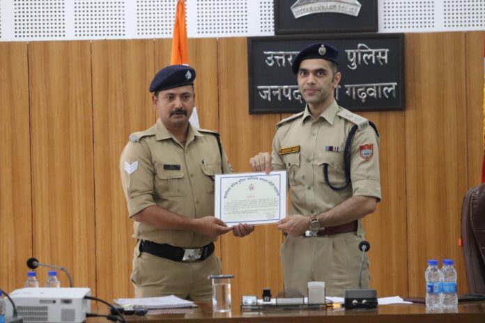 अप्रैल माह में उत्कृष्ट कार्य करने वाले 12 पुलिस कार्मिकों को Employee of the month व चारधाम यात्रा में अच्छी ड्यूटी करने वाले 18 कार्मिकों को प्रशस्ति पत्र देकर किया गया सम्मानित।