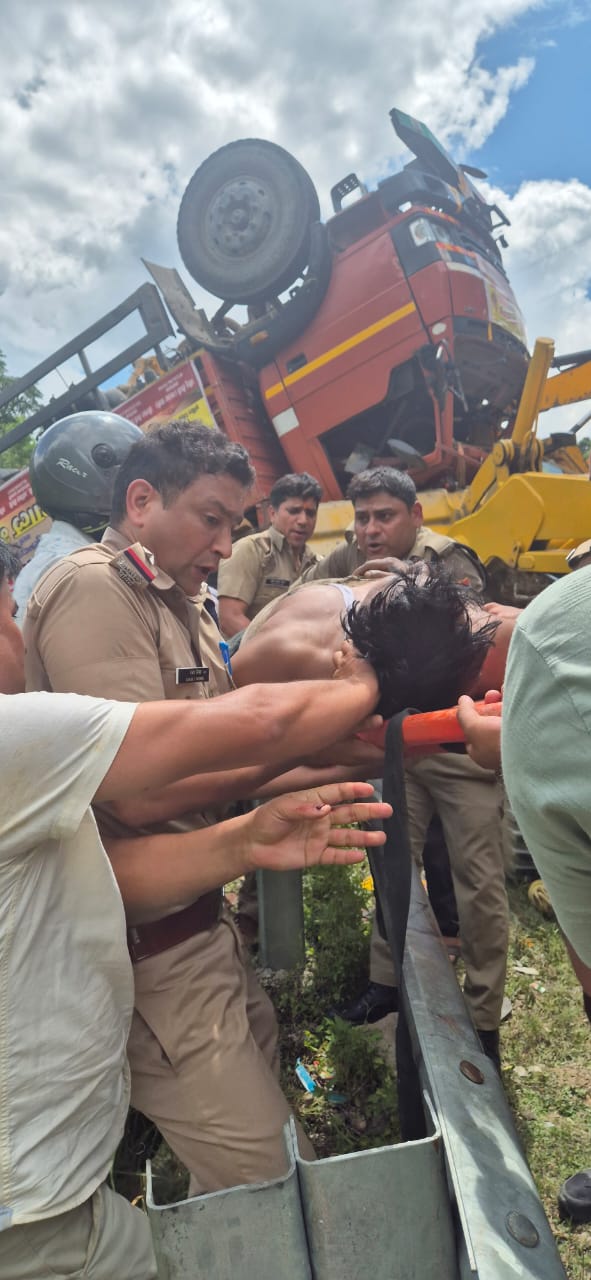 🔷 सूचना मिलते ही प्रभारी निरीक्षक नरेंद्र नगर संजय मिश्रा दल बल के साथ मौके पर पहुंचे। एक चार साल का बच्चा भी ट्रक में आगे फंसा था जिसको कि पुलिस ने सकुशल बाहर निकल दिया।