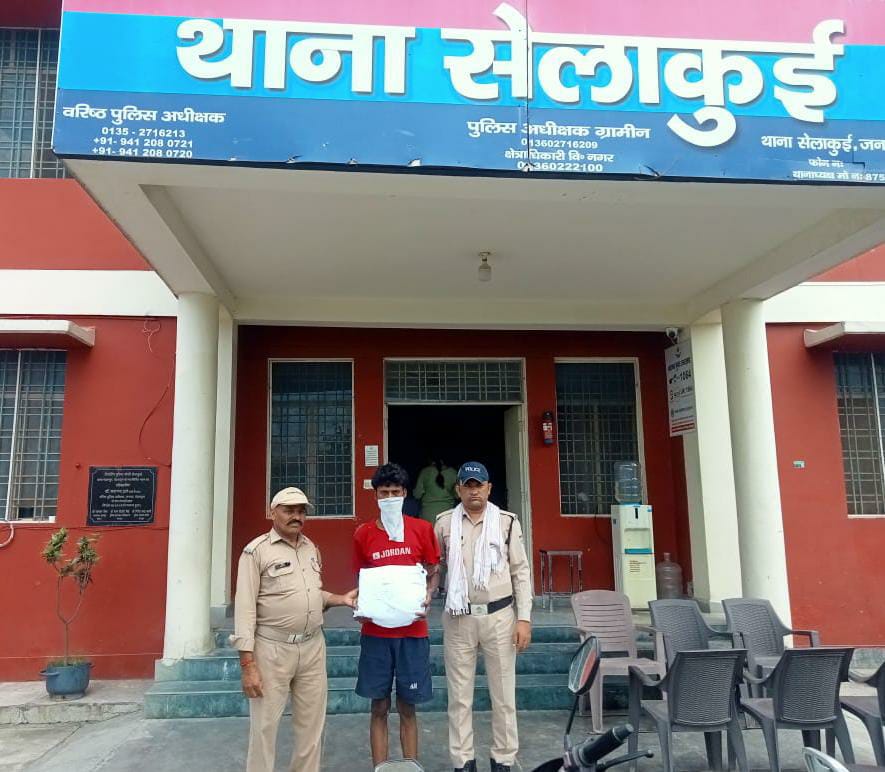 दिनांक 12/07/2025 को सेलाकुई पुलिस द्वारा दौराने गश्त/चैकिंग सेलाकुई क्षेत्रान्तर्गत अलग अलग स्थानों से मुखबिर की सूचना पर 02 अभियुक्तो हीरा साहनी को 02 किलो 607 ग्राम अवैध गांजे तथा दिनेश कुमार को 90 टेट्रा पैक देसी शराब के साथ गिरफ्तार किया गया। अभियुक्तो के विरुद्ध थाना सेलाकुई पर एनडीपीएस एक्ट तथा आबकारी अधिनियम के तहत अभियोग पंजीकृत किया गया।