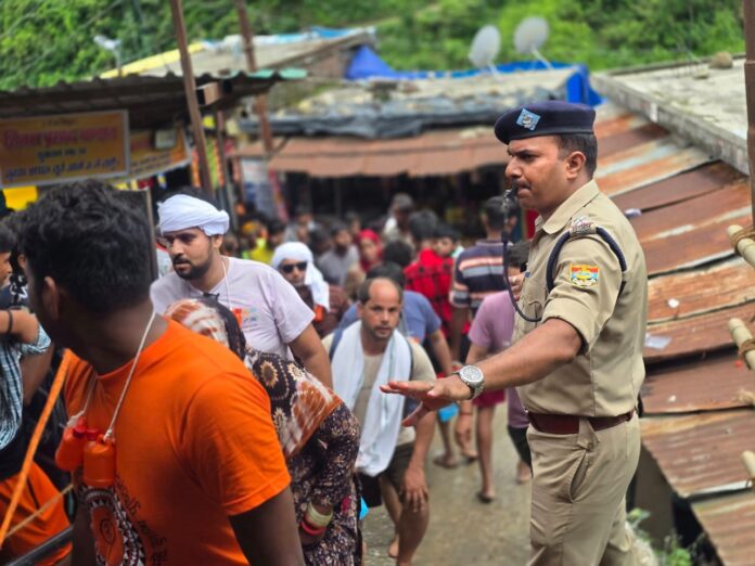 श्रावण मास में चल रही इस विशाल कांवड़ यात्रा के दौरान श्रद्धा, सुरक्षा और सेवा के संकल्प के साथ पौड़ी पुलिस के जवान दिन-रात नीलकंठ यात्रा मार्ग व सम्पूर्ण मेला क्षेत्र में तैनात हैं। तेज धूप हो या उमड़ती भीड़, हर चुनौती का सामना करते हुए पुलिस कर्मी अपनी पूरी निष्ठा से अपने ड्यूटी प्वाइंटो पर डटे हुए हैं सुरक्षा व्यवस्था, ट्रैफिक नियंत्रण, खोया-पाया सहायता और हर जरूरतमंद की मदद में पुलिस पूर्ण समर्पण के साथ कार्य कर रही है।