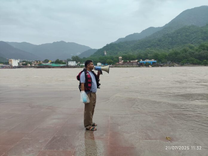 💢 आज दिनांक 21.7.2025 को थाना मुनिकीरेती क्षेत्र के सभी घाटों पर लाउड हेलर व PA सिस्टम के माध्यम से जल पुलिस टीम के द्वारा लगातार घाटों पर गस्त की जा रही है व लोगों को सचेत किया जा रहा है।