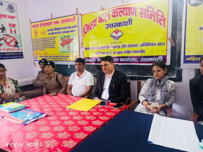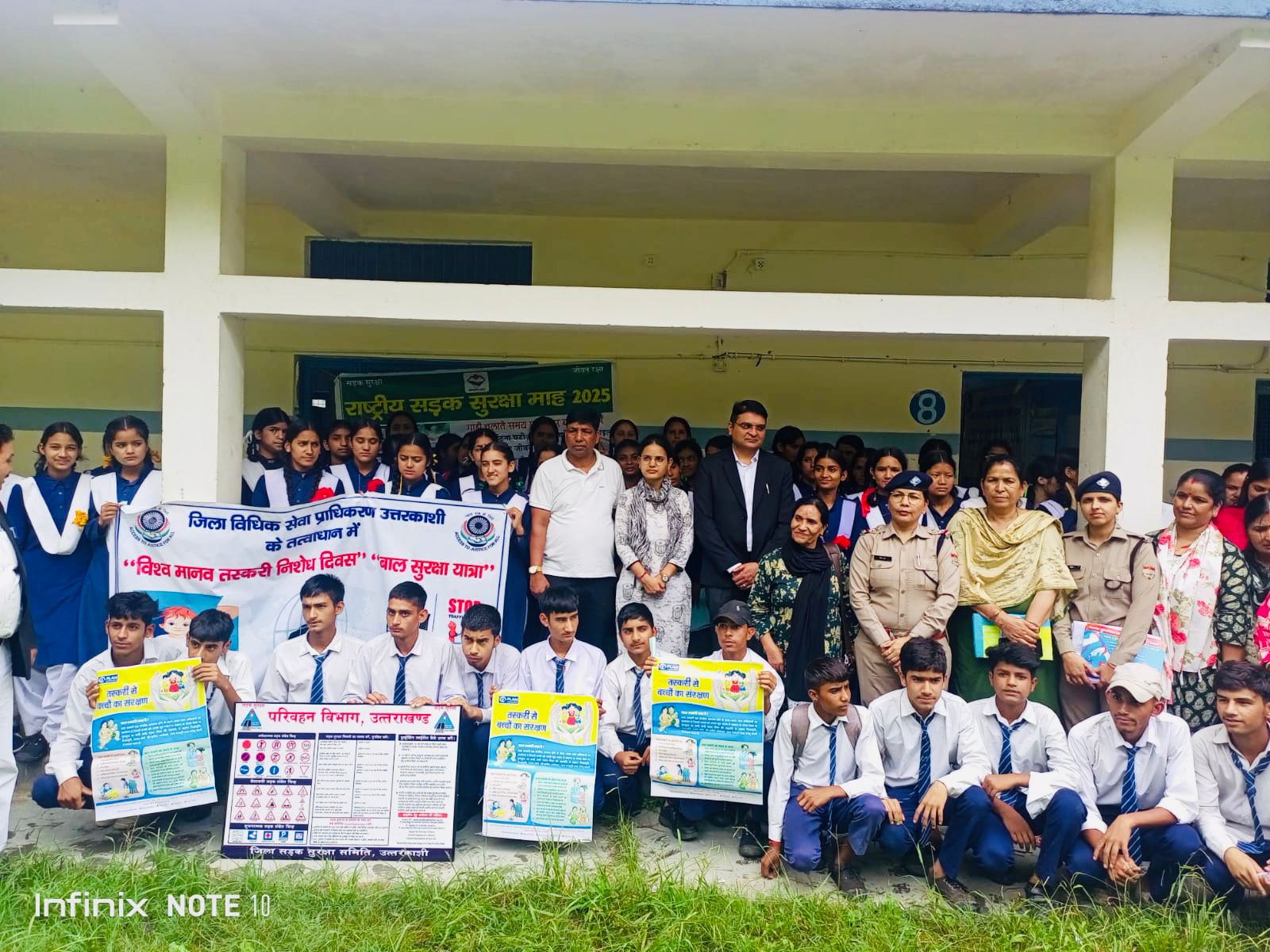 जिला विधिक सेवा प्राधिकरण उत्तरकाशी के तत्वधान मे आज 30 जुलाई 2025 को विश्व मानव तस्करी निषेध दिवस के अवसर पर शहीद मेजर मनीष गुसांई राजकीय इण्टर कॉलेज जोशियाडा, उत्तरकाशी में “बाल सुरक्षा यात्रा” जनजागरुकता कार्यशाला आयोजित की गयी। कार्यशाला में पुलिस, एआरटीओ, बाल कल्याण समिति, वन स्टॉप सेंटर, चाइल्ड हेल्प लाइन, जेजेबी विभाग आदि विभाग की टीम द्वारा स्कूली छात्र-छात्राओं को विभिन्न उपयोगी जानकारियां दी गयी।