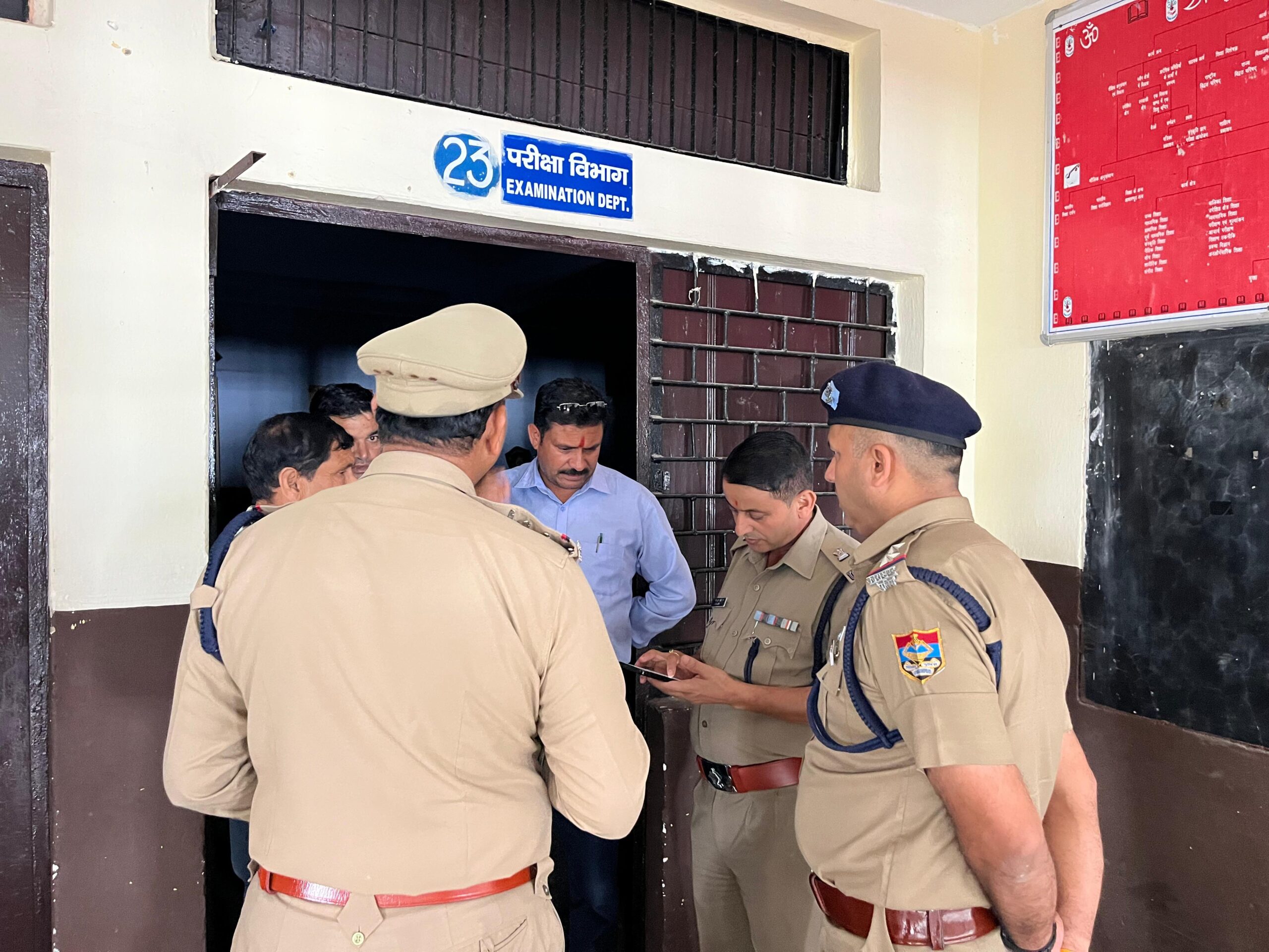 श्री जे 0आर0 जोशी अपर पुलिस अधीक्षक जनपद टिहरी गढ़वाल के द्वारा मुख्यालय के चारों परीक्षा केंद्रों का भौतिक निरीक्षण किया गया एवं सीटिंग अरेंजमेंट का जायजा लिया गया ।