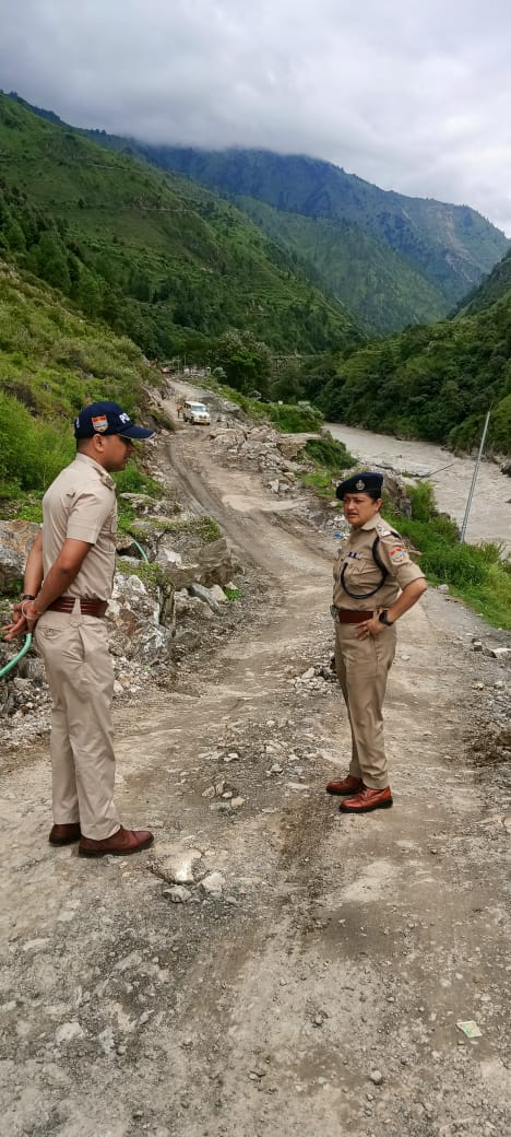 गंगोत्री राष्ट्रीय राजमार्ग पर भू-स्खलन प्रभावी क्षेत्रों में एस0पी0 उत्तरकाशी स्वयं रहीं मौजूद