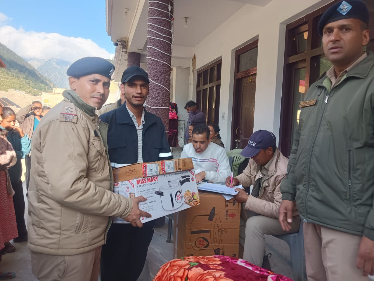 श्रीमती सरिता डोबाल पुलिस अधीक्षक उत्तरकाशी महोदया के निर्देशन में आज 10 सितंबर 2025 को पुलिस उपाधीक्षक श्री जनक सिंह पंवार द्वारा उत्तरकाशी पुलिस टीम के साथ धराली गांव पहुंचकर आपदा प्रभावितों से मिलकर कुशलक्षेम जानी गयी तथा प्रभावित परिवारों को हिन्दुस्तान यूनिलीवर लिमिटेड हरिद्वार के सौजन्य से प्राप्त कम्बल, तिरपाल, जूते/चप्पल, बर्तन आदि आवश्यक उपयोग की वस्तुएं वितरित की गई।