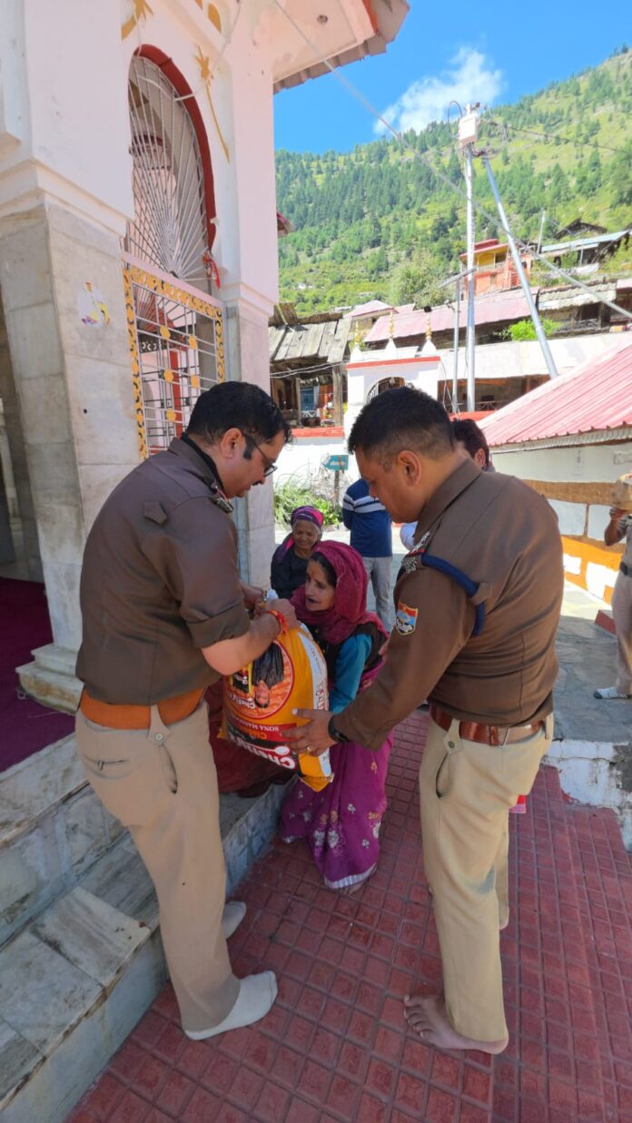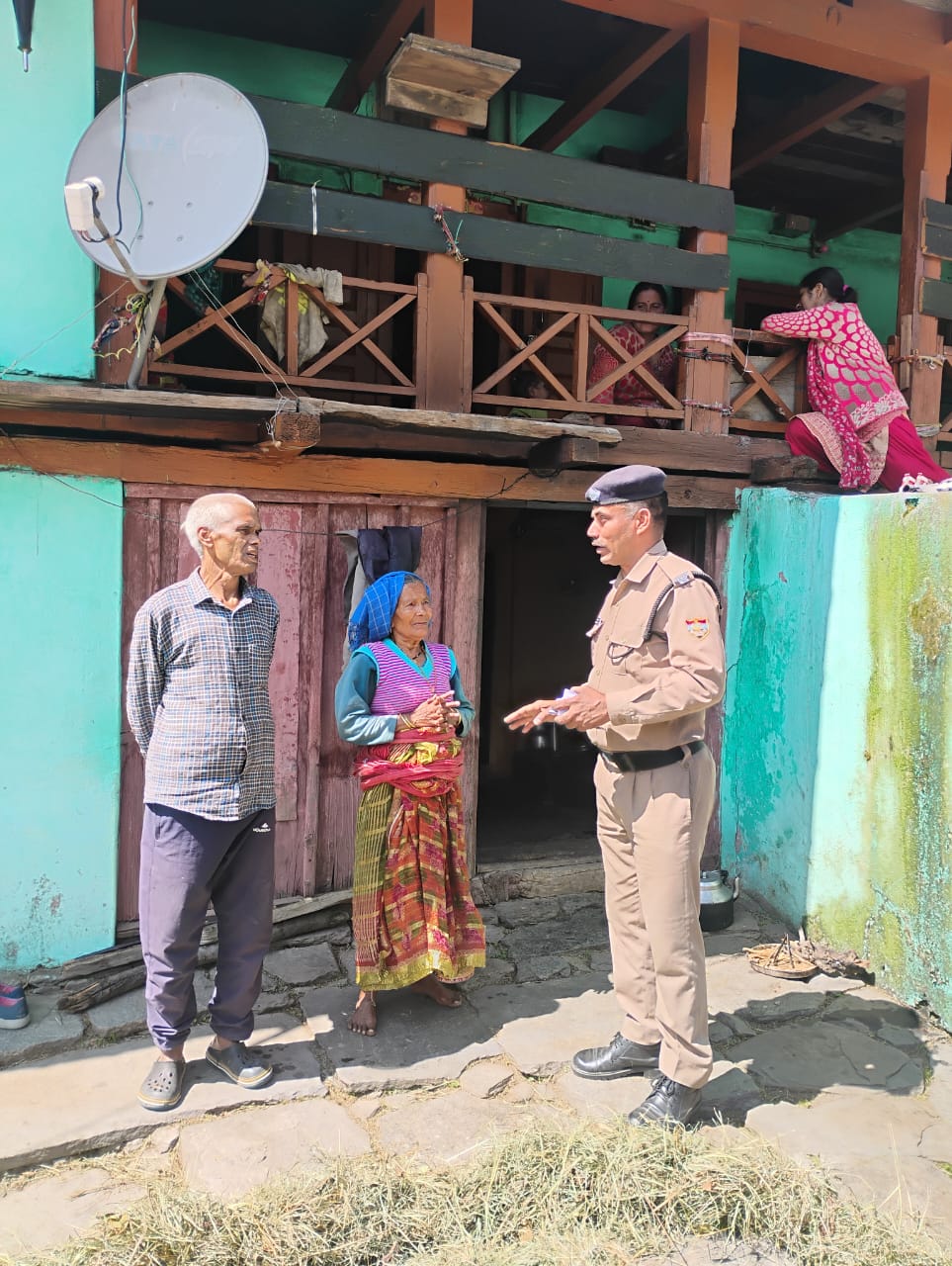 श्रीमान पुलिस अधीक्षक उत्तरकाशी महोदया के निर्देशन मे उत्तरकाशी पुलिस द्वारा ‘कम्युनिटी पुलिसिंग’ के अंन्तर्गत गांव-गांव जाकर ग्रामीणों एवं सीनियर सिटीजन से लगातार सम्पर्क साधा जा रहा है। आज 22.09.2025 को थानाध्यक्ष हर्षिल श्री दीपक रावत के नेतृत्व में हर्षिल पुलिस द्वारा ग्राम मुखवा व झाला में जाकर गांव के सीनियर सिटीजन की कुशलक्षेम पूछते हुये समस्याओं को सुना गया। सभी को साईबर अपराध/डिजिटल अरेस्ट, नशा एवं अन्य सामाजिक कुरीतियों के प्रति जागरुक किया गया । इस दौरान पुलिस टीम द्वारा एकल रुप से रह रही 03 बुजुर्ग माताओं को राशन किट भी वितरित की गयी।