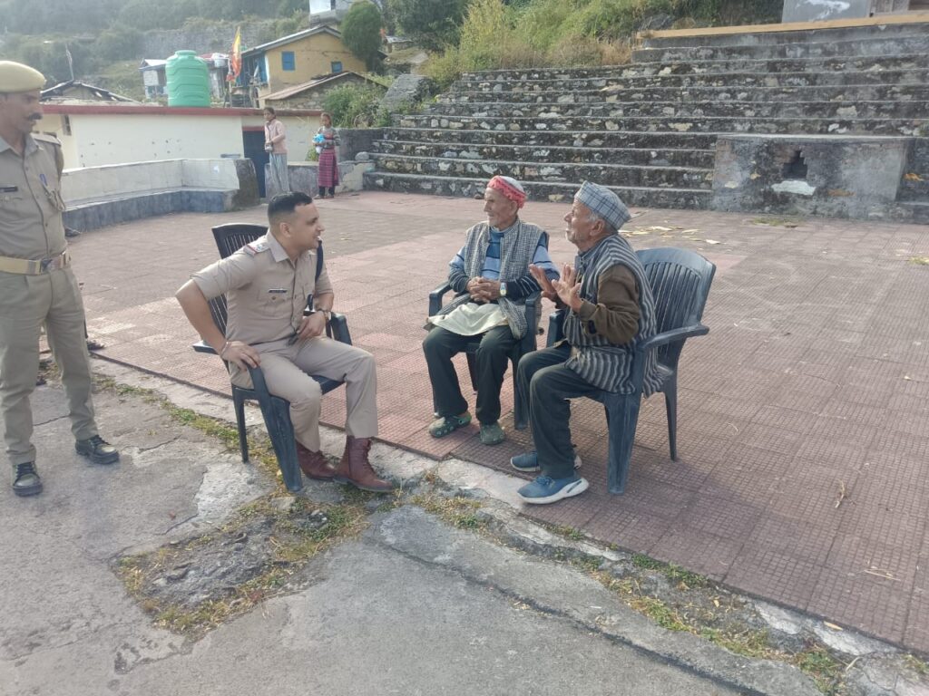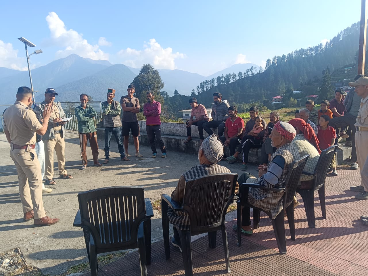 “सामुदायिक पुलिसिंग” के अंतर्गत उत्तरकाशी पुलिस द्वारा श्रीमान पुलिस अधीक्षक उत्तरकाशी महोदया के निर्देशन में वरिष्ठ नागरिकों से मुलाकात कर उनका हाल-चाल जाना जा रहा है, साथ ही आमजनमानस को नशे के दुष्प्रभाव, साइबर अपराध तथा सामाजिक कुरीतियों के प्रति लगातार जागरुक किया जा रहा है। आज 4 अक्टूबर 2025 को चौकी प्रभारी, श्री निखिल देव चौधरी के नेतृत्व में चौकी भटवाड़ी पुलिस टीम द्वारा दूरस्थ ग्राम नटीन में ग्रामीणों के साथ संवाद एवं जागरूकता कार्यक्रम आयोजित किया गया। उपस्थित ग्रामवासी, महिलाओं, किशोर, युवा एवं वरिष्ठ नागरिकों को साइबर अपराध, बाल अपराध, नशा, यातायात नियमों एवं अन्य सामाजिक बुराइयों के प्रति जागरूक किया गया। कार्यक्रम के अंतर्गत पुलिस द्वारा गाँव में उगी लगभग 15 नाली प्राकृतिक भांग को ग्रामीणों के सहयोग से नष्ट किया गया तथा लोगों को नशे के दुष्प्रभावों के बारे में विस्तृत जानकारी दी गई। गाँव के बुजुर्ग एवं वरिष्ठ नागरिकों की कुशल-क्षेम पूछी गई, उनकी समस्याओं को ससम्मान सुना गया तथा आवश्यक सहायता व समाधान का आश्वासन दिया गया।